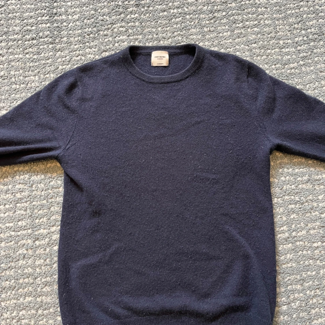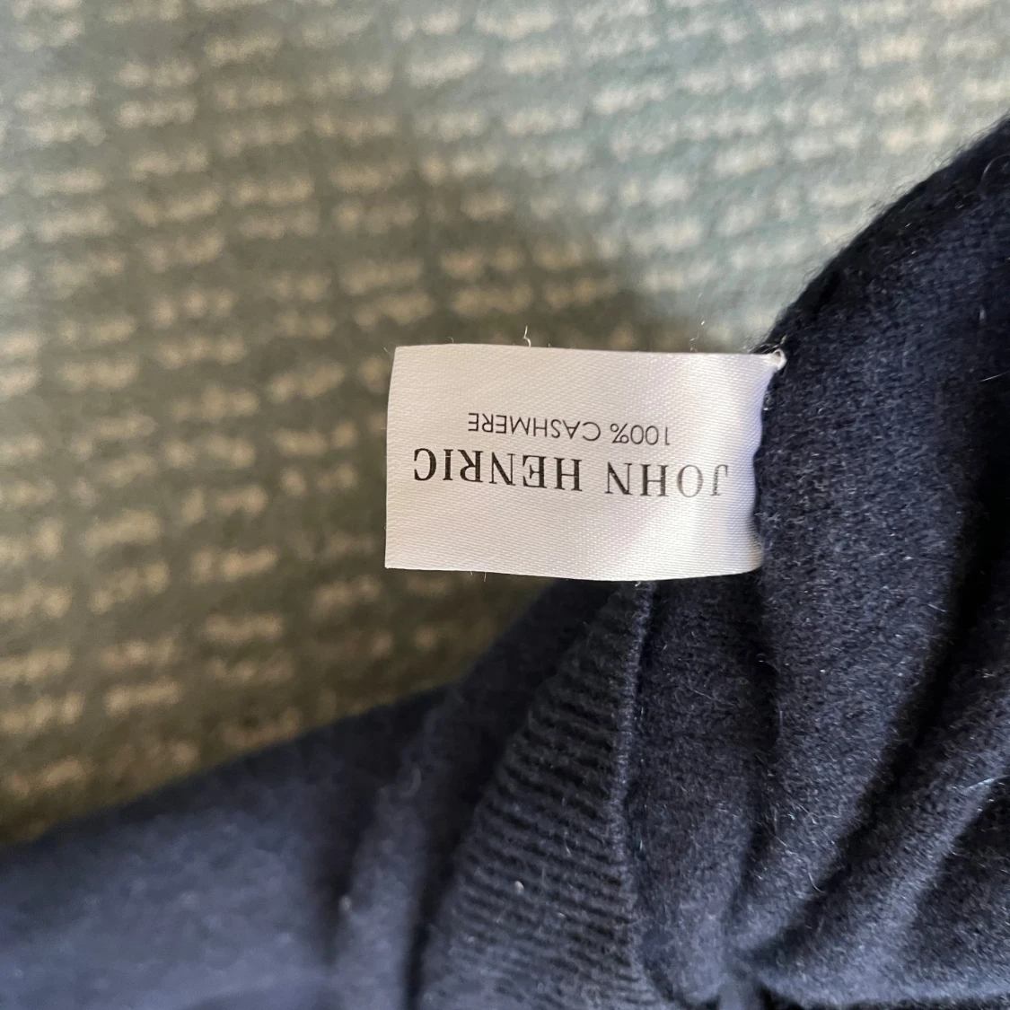 Säljer en elegant mörkblå kashmirtröja från John Henric. Tröjan har en klassisk design med rund hals och långa ärmar, perfekt för en stilren look. Tillverkad i 100% kashmir för en lyxig känsla. Passar utmärkt för både vardag och mer uppklädda tillfällen.