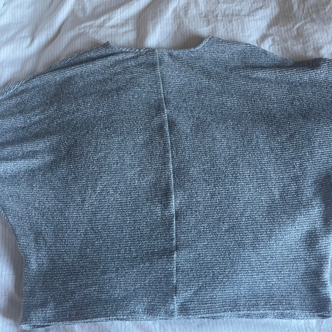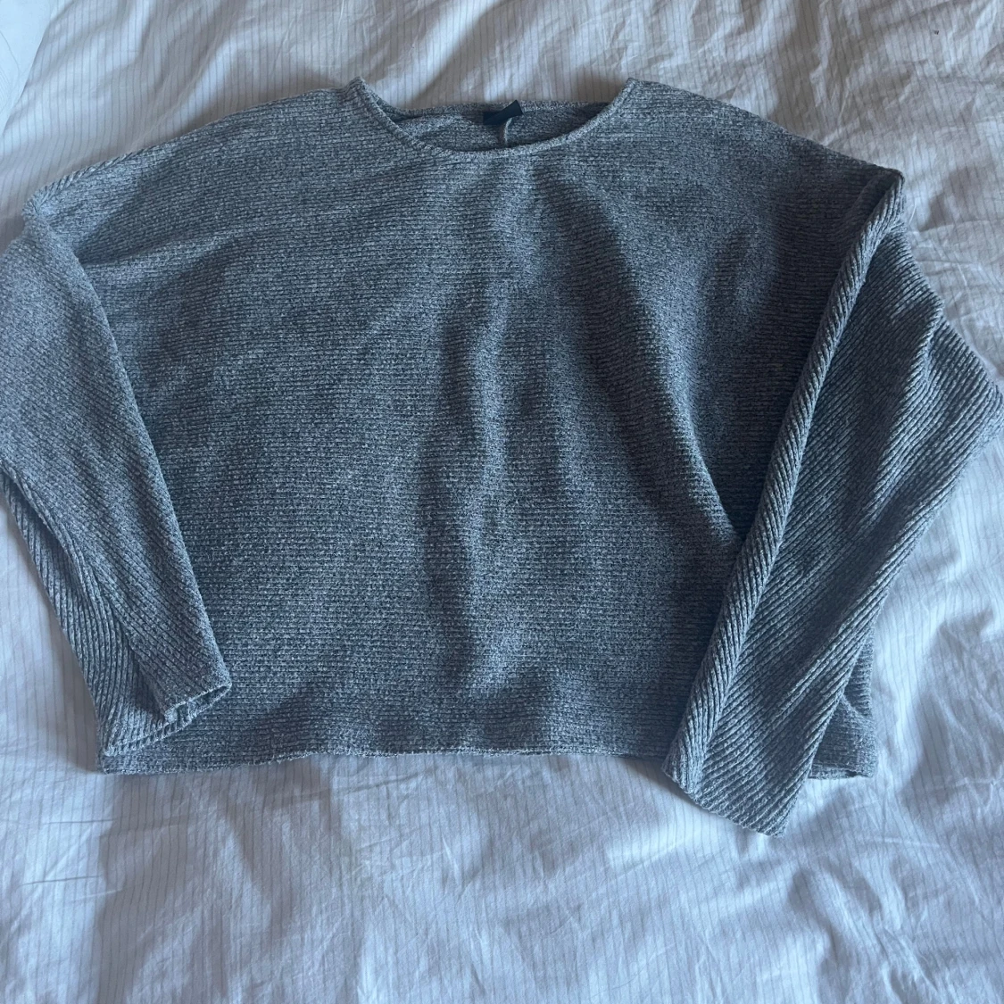 Säljer en enkel och stilren grå stickad tröja med rund halsringning. Tröjan har lång ärm och rak passform, perfekt för lager-på-lager. Materialet är mjukt och ger en avslappnad känsla.