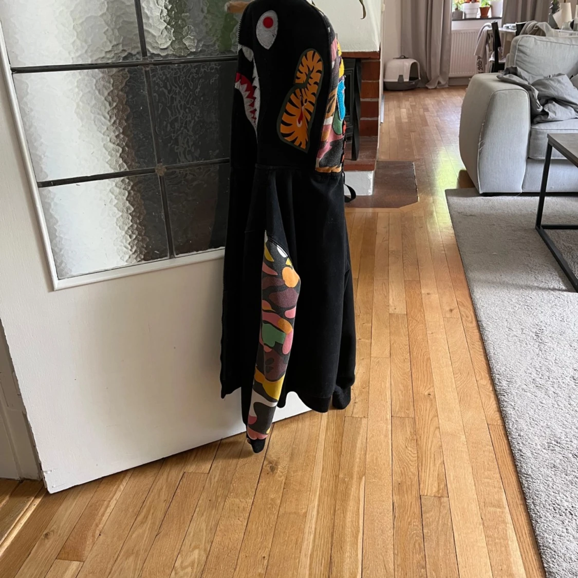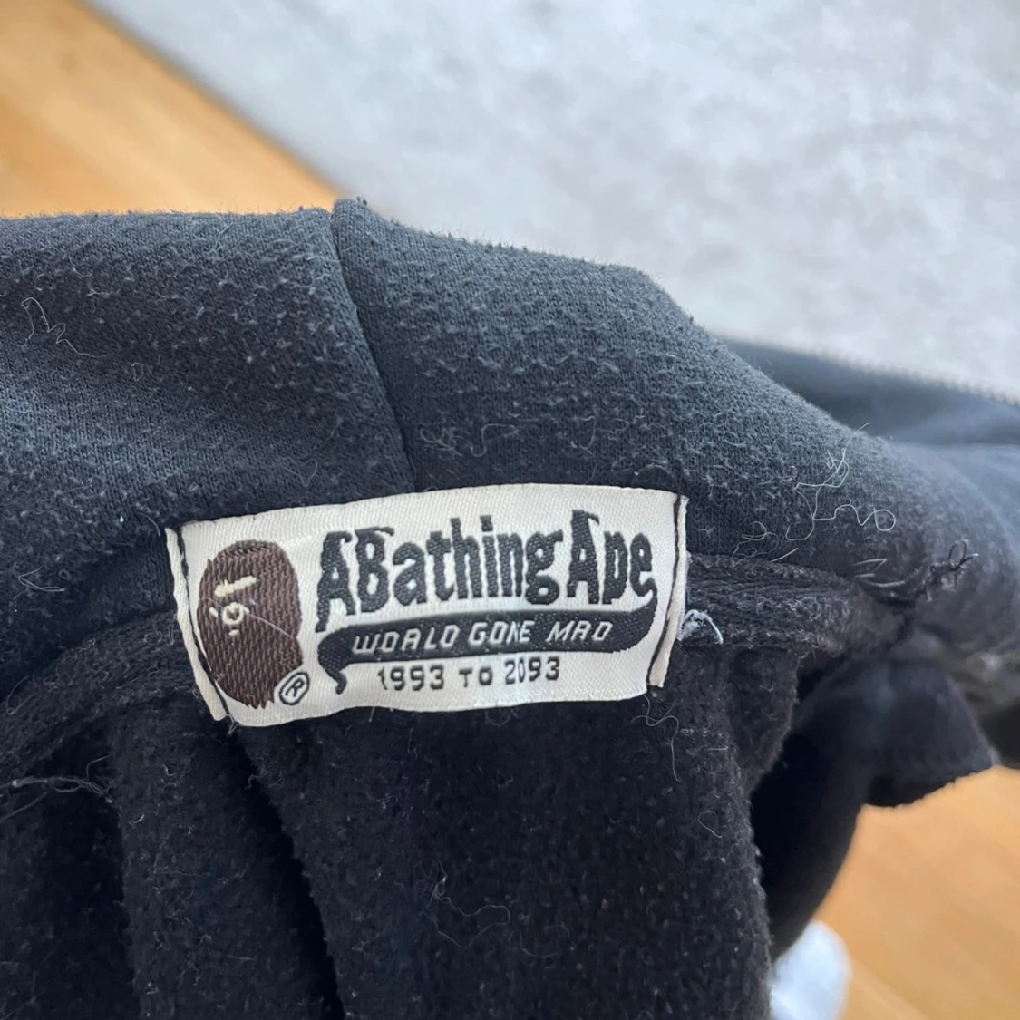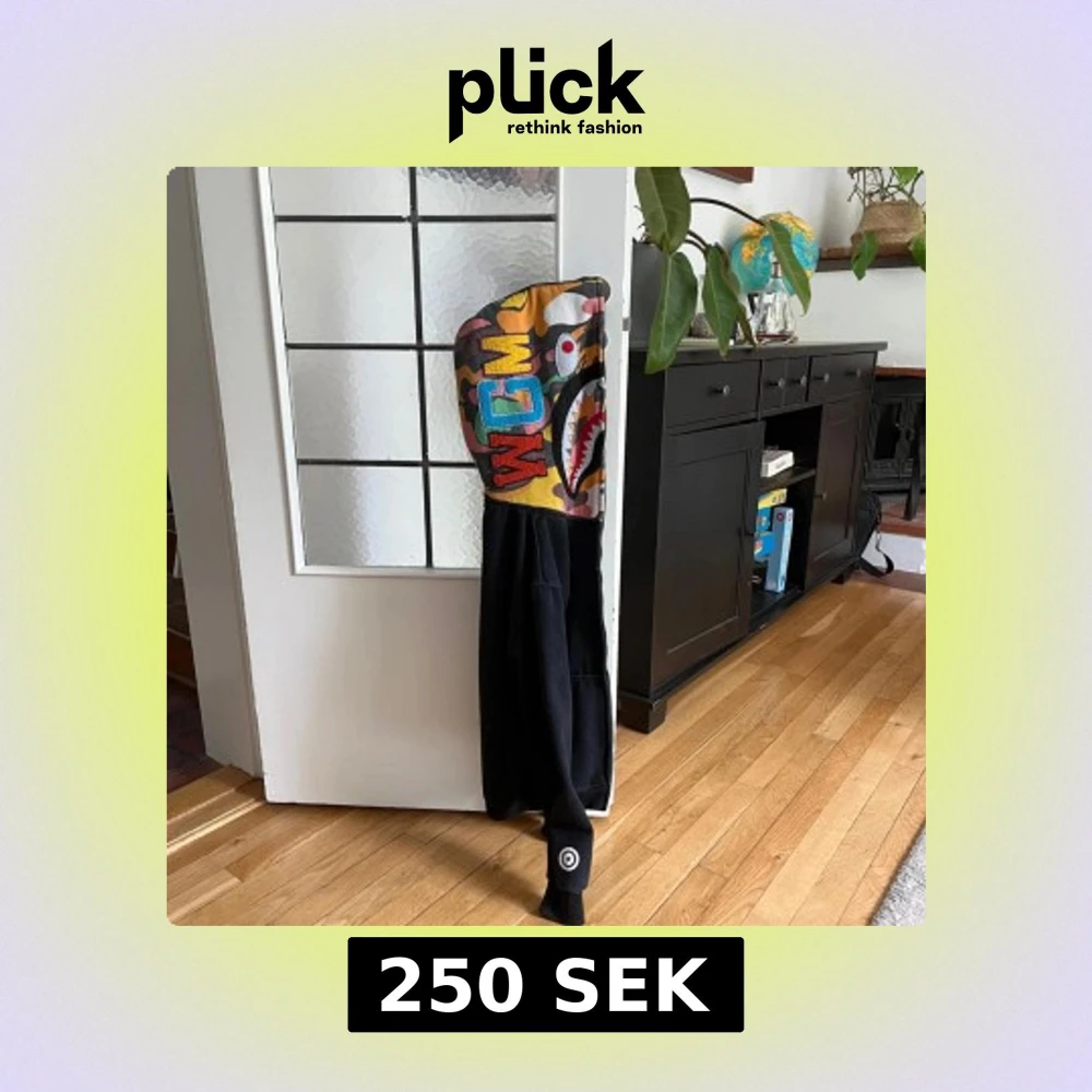 Säljer en svart hoodie från A Bathing Ape, storlek S. Den är i hyfsat skick men tyvärr så fungerar inte dragkedjan därav priset. Skriv vid minsta fundering, priset är ej hugget i sten!