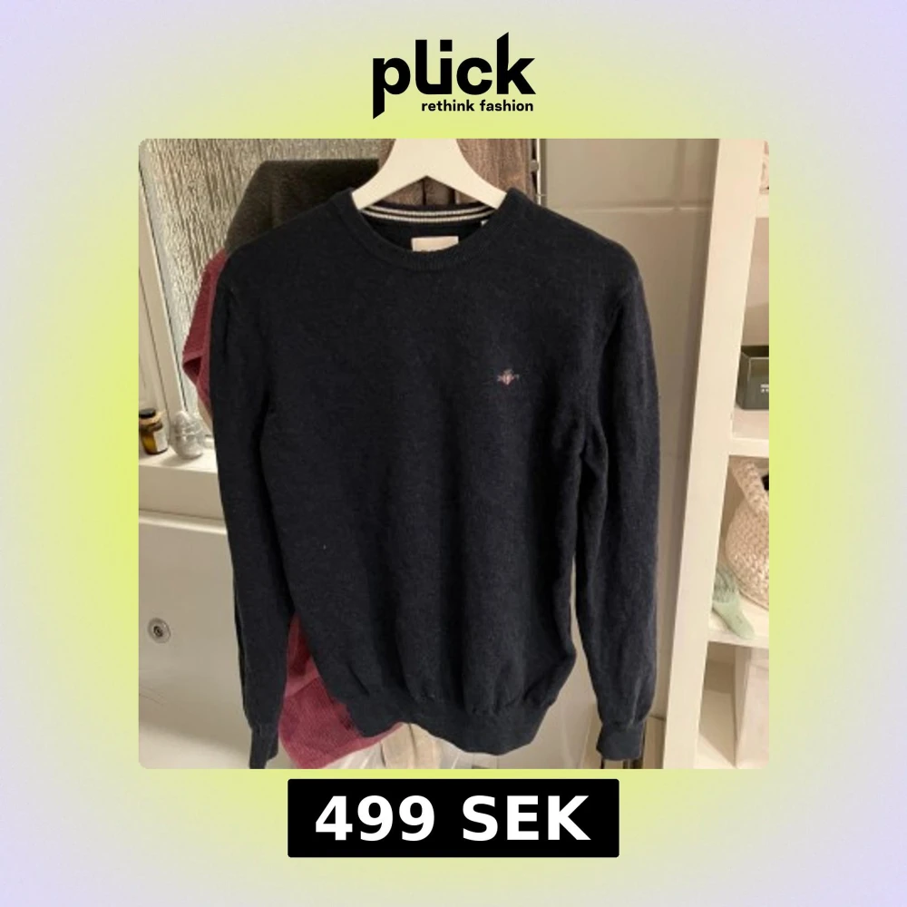 Säljer nu min mörkblåa Gant tröja i storlek S! Ett litet hål i vänster armen men som knappt syns. Ny pris 1200. Skick 7/10⭐️