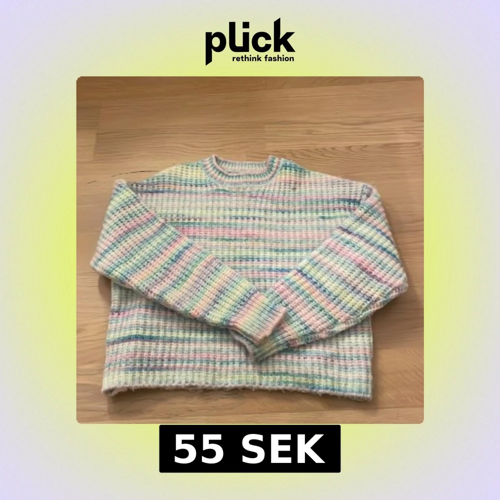Superfin stickad tröja från Pigalle i storlek S. Tröjan har ett pastellrandigt mönster i ljusa toner av rosa, blått, grönt och gult. Modellen är lite oversize passform med rund hals och långa ärmar. Perfekt för dig som gillar färg och mjuka vibes.