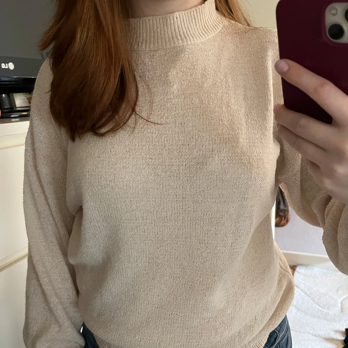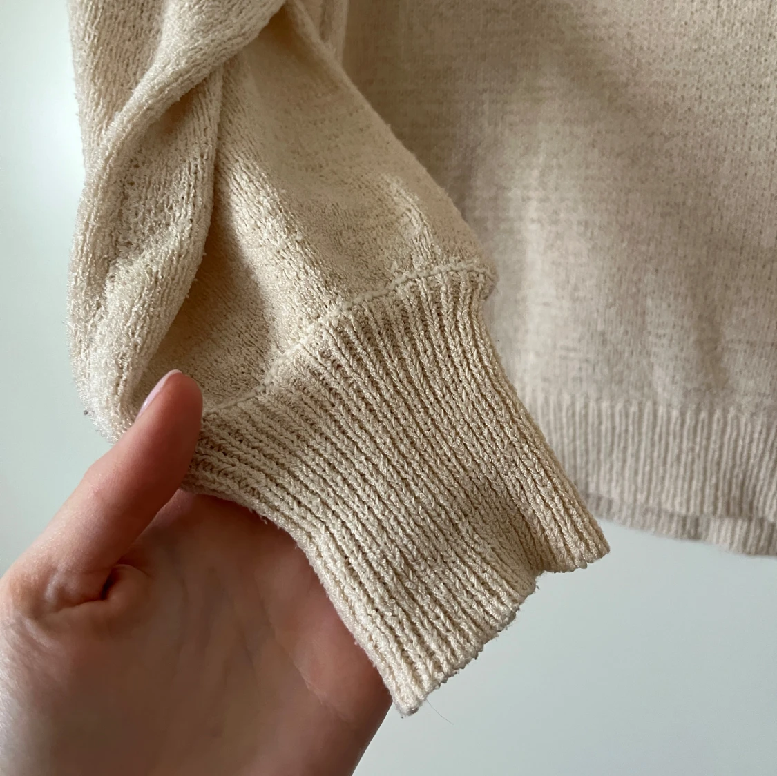 Säljer en stilren beige stickad tröja från Club XPRS. Litet ”hårdare” material.