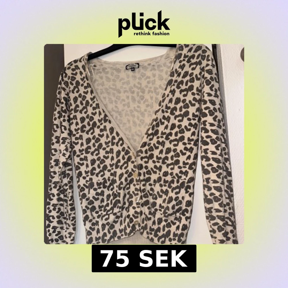 Beige kofta med svart leopardmönster. (fattas en knapp)