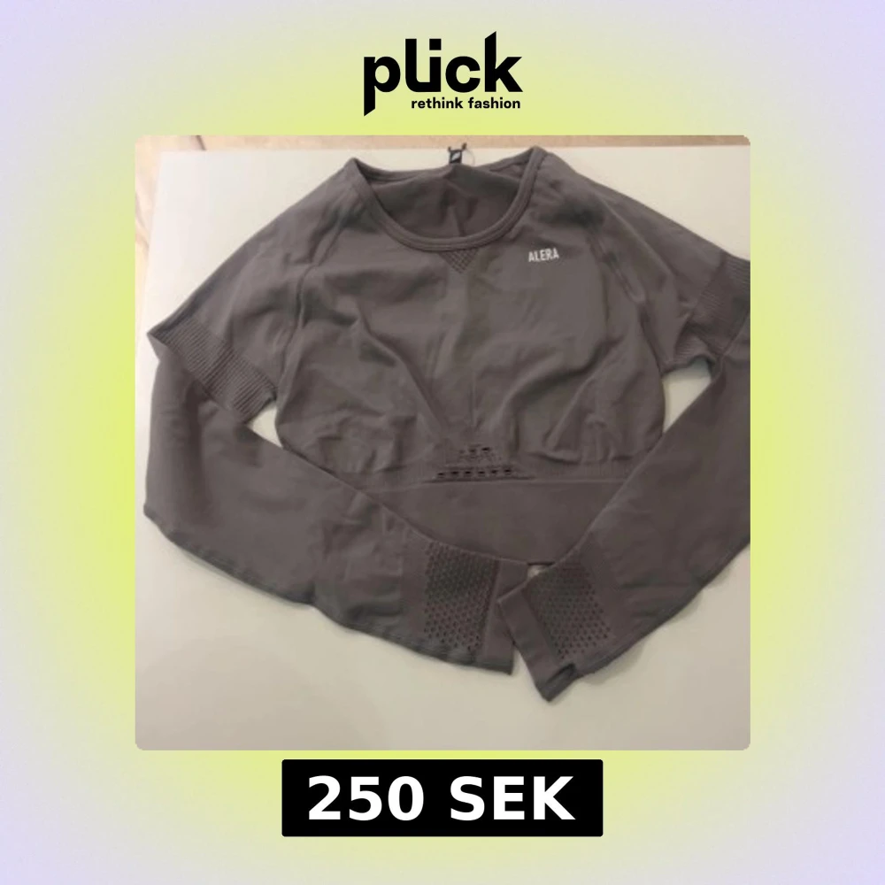 Säljer en grå långärmad träningströja från ALERA. Tröjan är croppad och har ventilerande meshdetaljer vid midjan och ärmsluten. Perfekt för gymmet eller löpning. Snygg och funktionell design med tight passform.