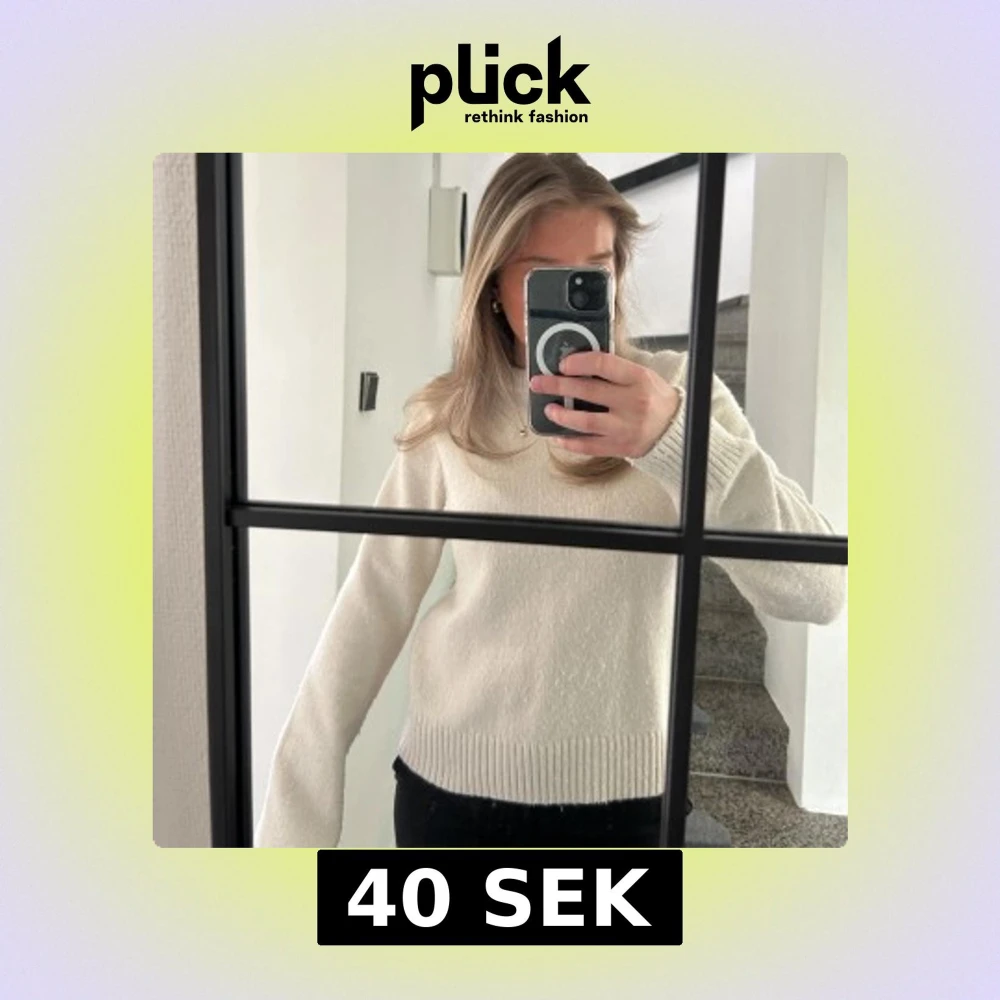 Säljer en vanlig krämvit stickad tröja. Något nopprig men annars i fint skick.