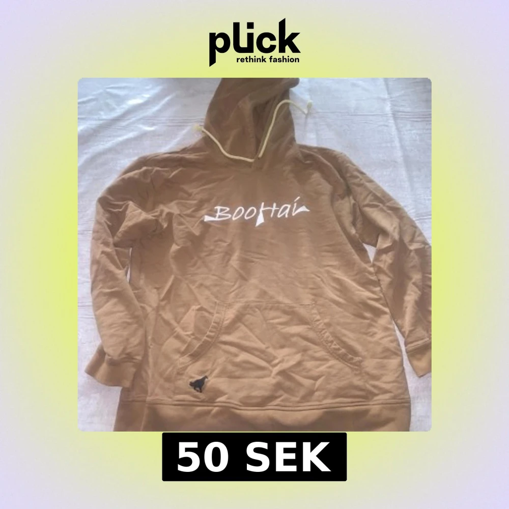 Säljer en beige hoodie från BootHai med vit logga på bröstet och en svart hunddetalj vid fickan. Tröjan har huva med snörning och en stor magficka. Perfekt för chill dagar och streetstyle. Långärmad och tillverkad i mjuk bomull.