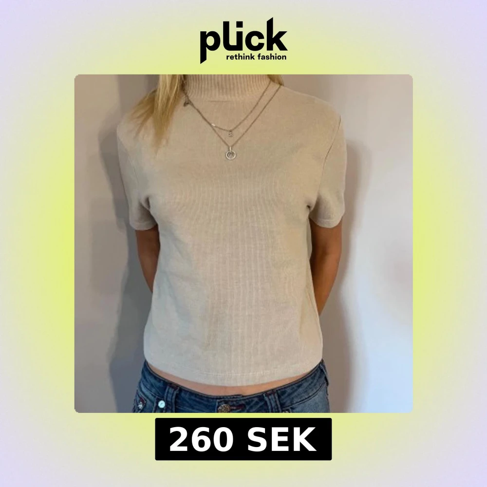 Beige ribbad polotröja - Säljer en stilren beige ribbad polotröja med korta ärmar. Perfekt för lager-på-lager eller som ett statement-plagg. Tröjan har en hög krage som ger en elegant touch. Passar både till jeans och kjol för en chic look.