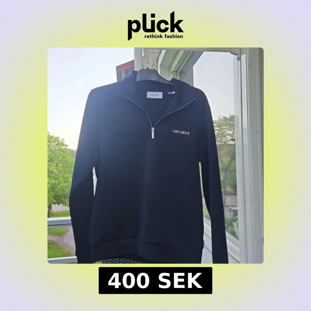 Säljer en Mörkblå långärmad tröja från Les Deux med halv dragkedja framtill och liten vit logga på bröstet. Perfekt för en stilren och avslappnad look. Det absolut enda tecken på användning är att kraglappen håller på att trilla av.