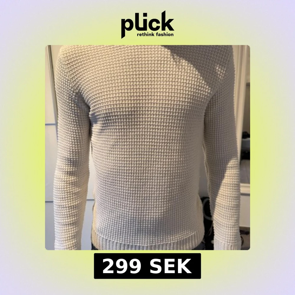 Säljer en beige stickad tröja med lång ärm och snyggt strukturmönster. Tröjan har ribbade muddar vid ärmslut och nederkant. Perfekt för lager-på-lager och passar till jeans eller chinos.