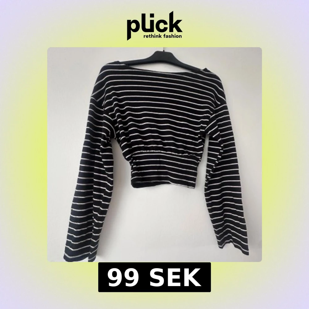 Säljer en svart croppad tröja med vita horisontella ränder. Tröjan har långa ärmar och en något tight passform vid midjan. Perfekt för dig som gillar en trendig och avslappnad stil.