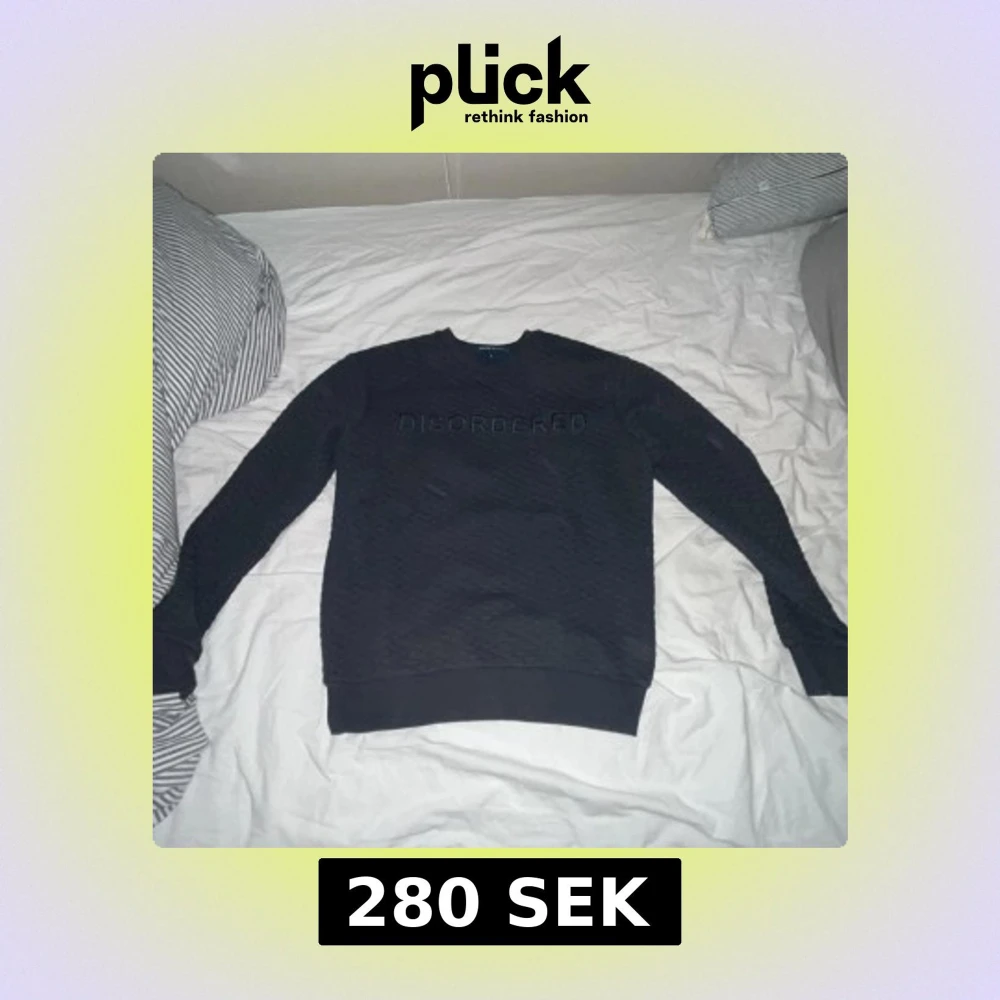 Svart sweatshirt från House Brand i storlek L i barn med diskret texten 'DISORDERED' broderad på bröstet. Tröjan har quiltad struktur, rund hals och långa ärmar. Perfekt för dig som gillar stilrena och bekväma plagg.