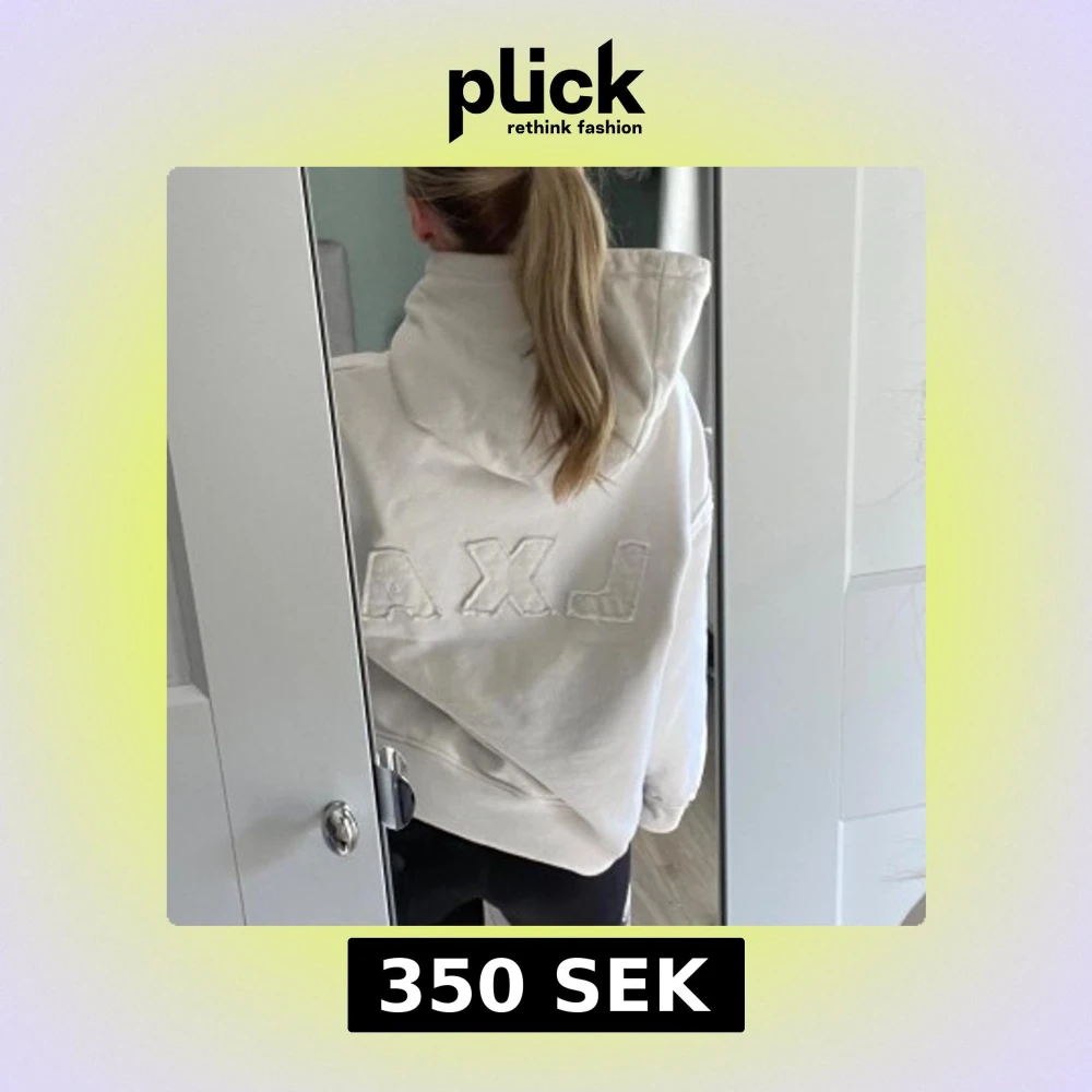 Säljer en oversized vit hoodie från LXA med broderade bokstäver på ryggen. Hoodien har långa ärmar med vågiga sömmar vid muddar och en stor huva. Perfekt för chill dagar och enkel att styla med jeans eller leggings.