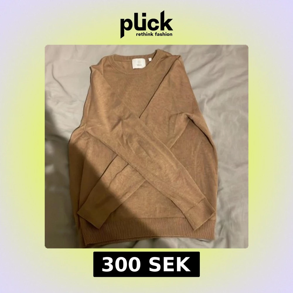Säljer en stilren beige tröja från Bläck i storlek S. Tröjan har en klassisk design med rund hals och ribbade muddar vid ärmslut och nederkant. Perfekt för en avslappnad look.