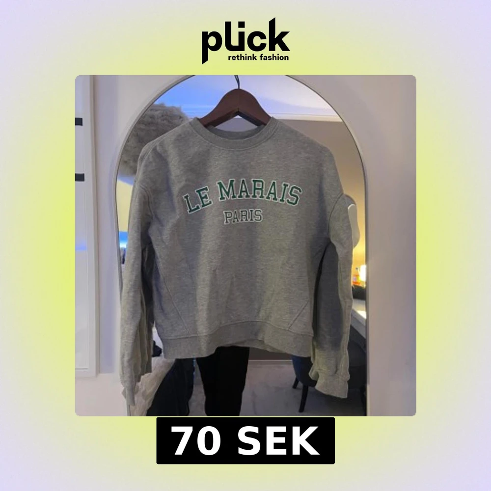 Snygg grå sweatshirt med trycket 'LE MARAIS PARIS' nästan aldrig använt den