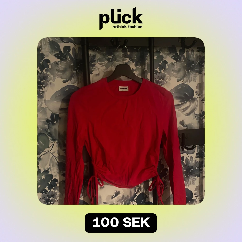 Säljer en snygg röd långärmad topp från Noisy May. Den har en cool knytdetalj i midjan som ger en unik look. Perfekt för både vardag och fest! 💃