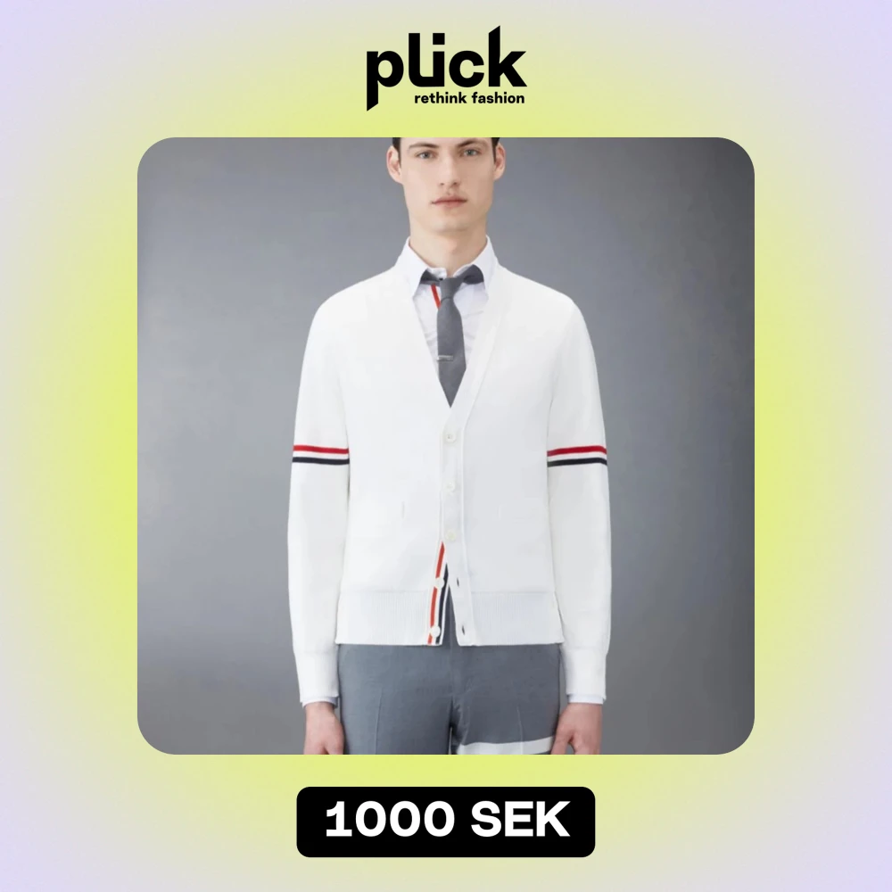 Stilren vit cardigan från lyxmärket Thom Browne. Köptes för inte så längesen men har endast använt en gång så den är som helt ny. Kan gå ner i pris vid snabb affär och kan skicka fler bilder