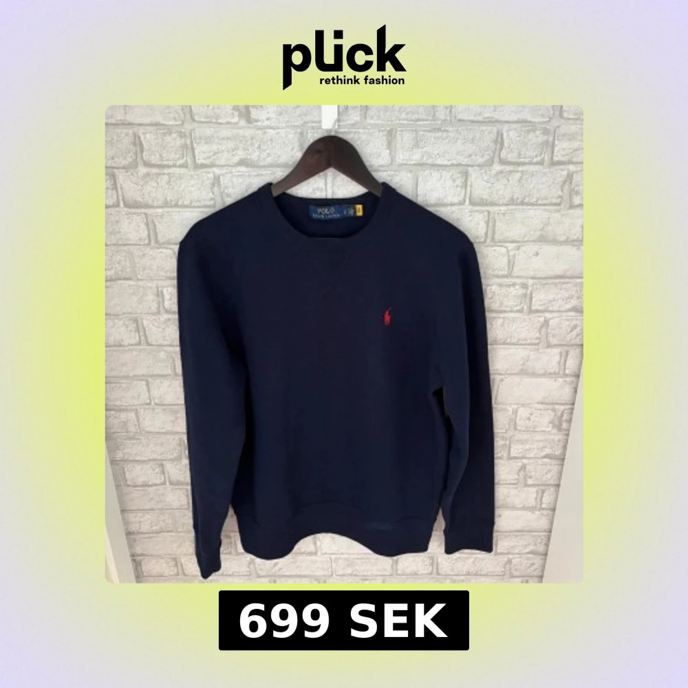 Enkel och stilren tröja från Ralph Lauren med röd logga på bröstet. Sitter snyggt och passar till det mesta. I bra skick och bara använd sparsamt – redo för ny ägare! Hör av dig vid intresse 🙌