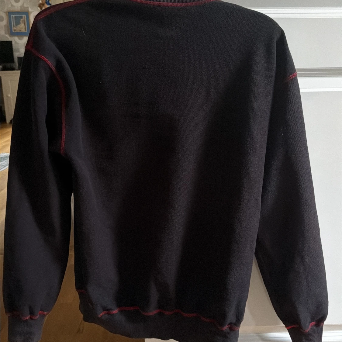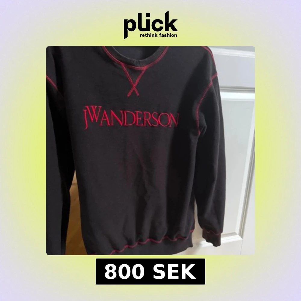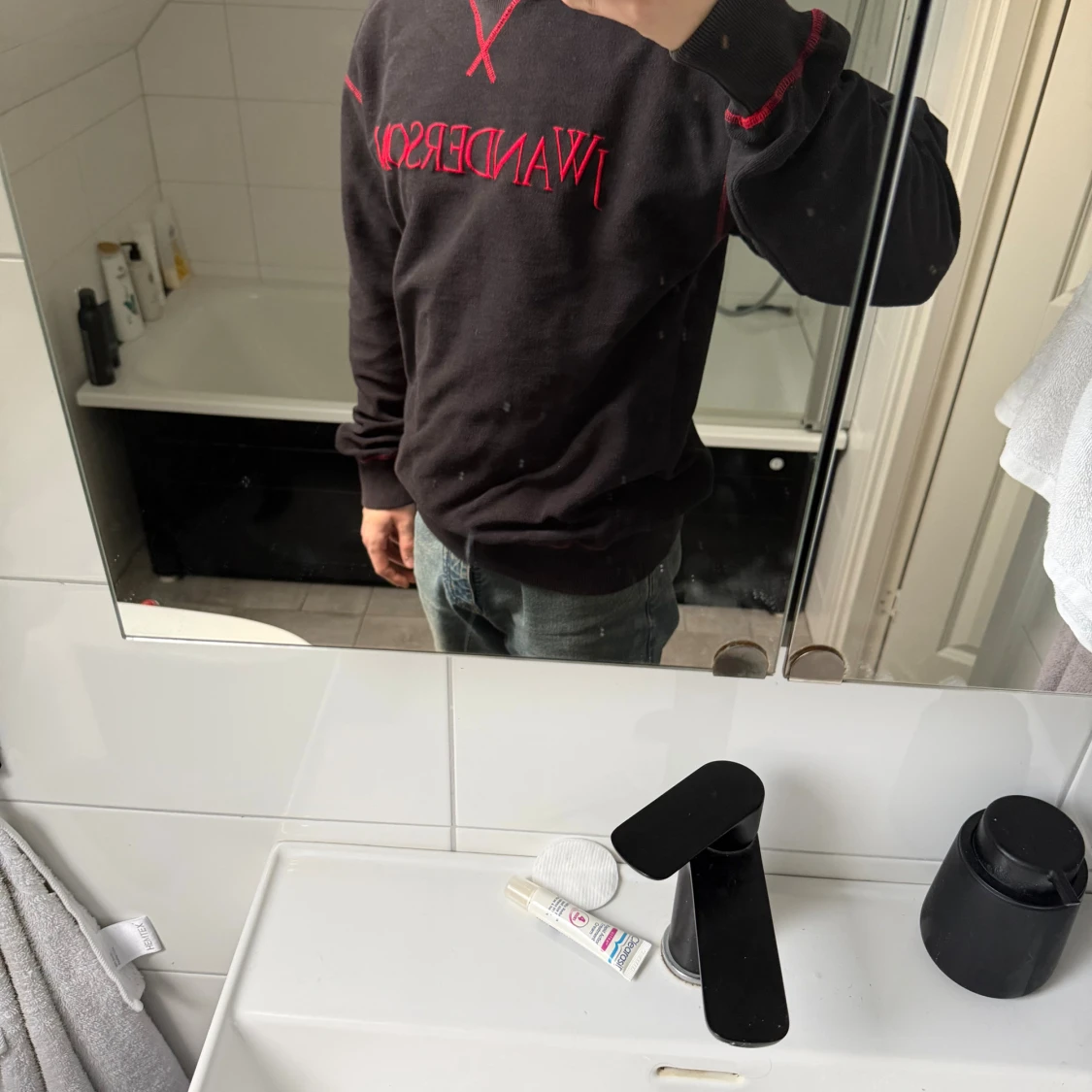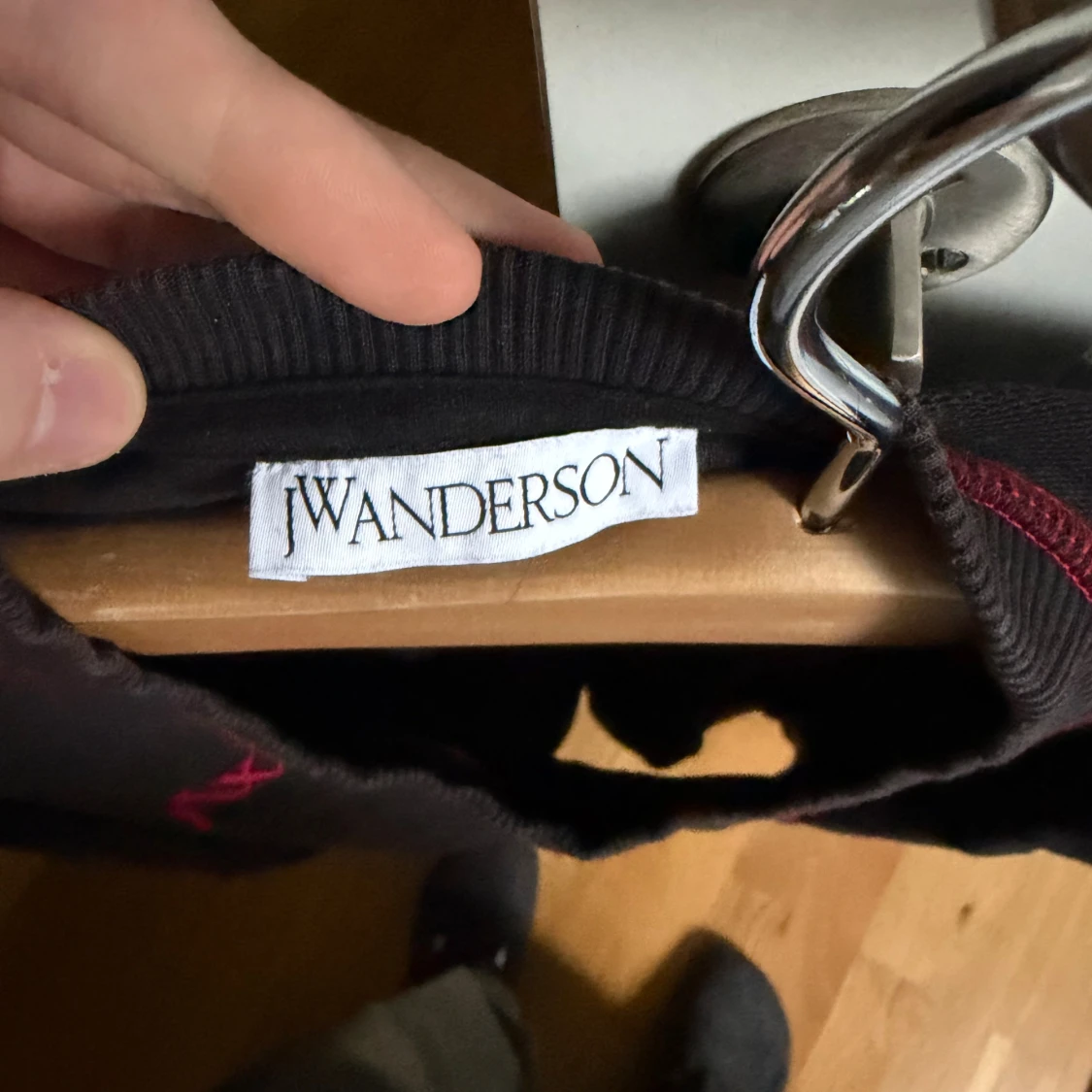Svart sweatshirt från JW Anderson i 100% bomull med röd broderad logga framtill och röda kontrastsömmar. Klassisk rund halsringning och långa ärmar. Perfekt för dig som gillar stilrena men ändå unika detaljer. Skön streetwear-stil som ändå är dressad. Tröjans design är att vara ”ut och in”.