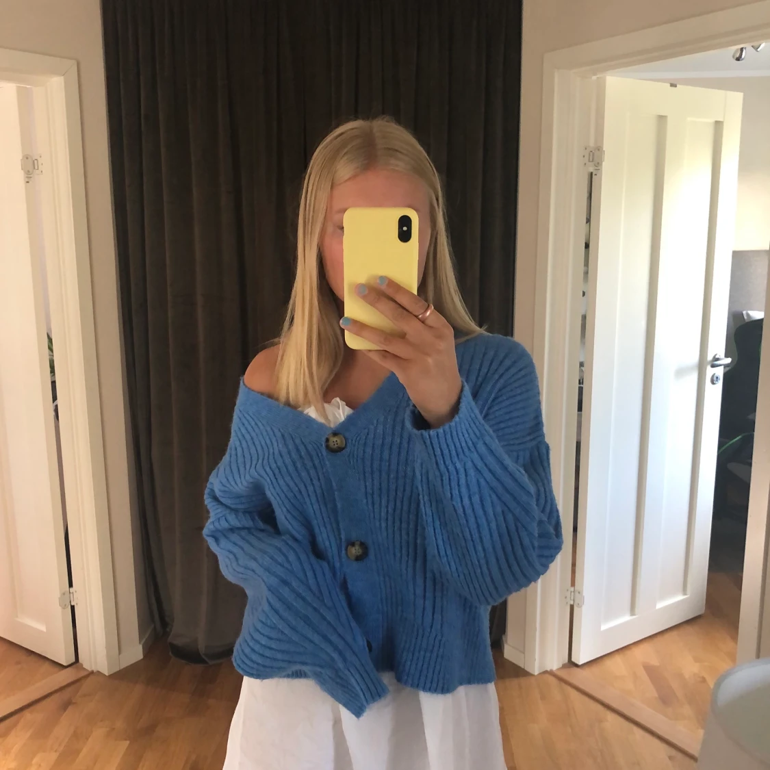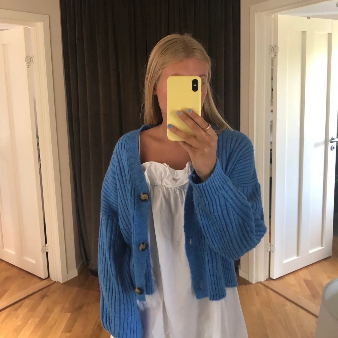 Kofta i en väldigt fin blå(intressekoll)nypris 200)
