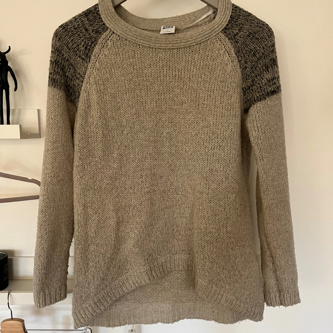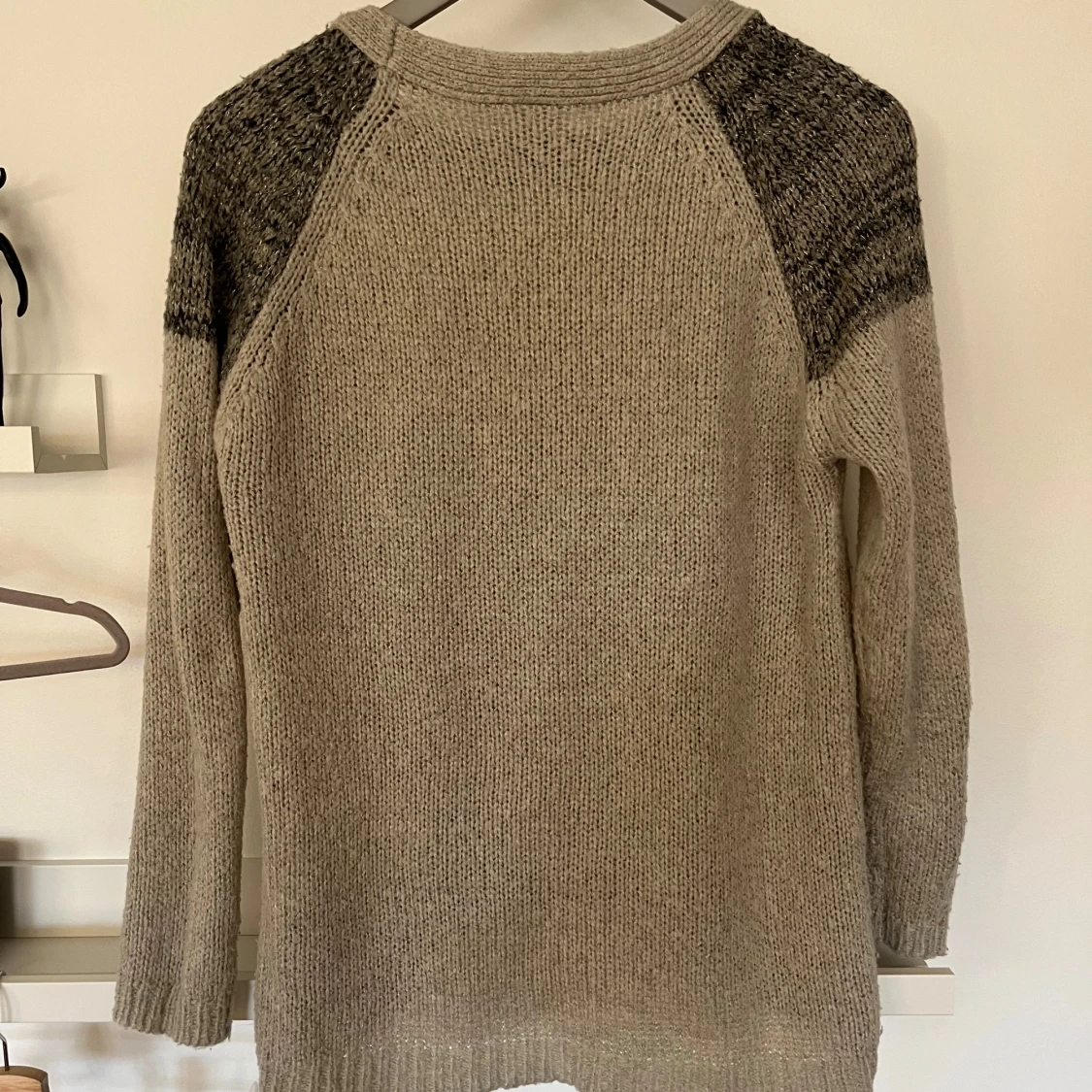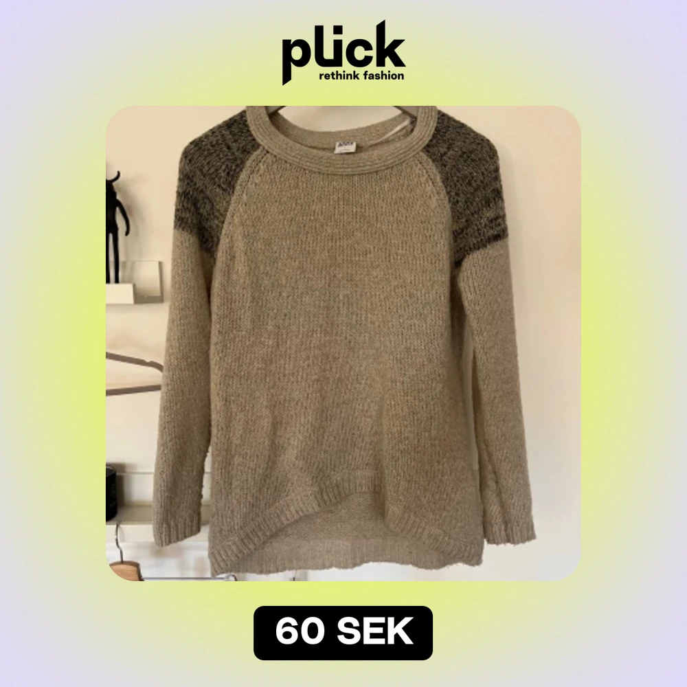 En stickad tröja i fint använt skick som går lite längre baktill än fram som syns på bilen. Storlek s. Möjligtvis lite smått stelare än ny.