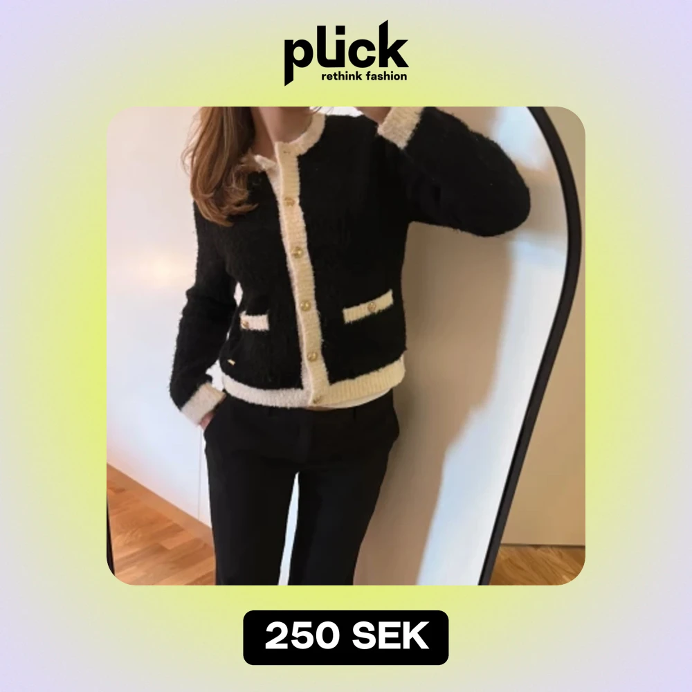 Svart vit kofta med guld knappar. Koftan är från LINDEX. Använd fåtal gånger. Fint skick. Storlek S. Skön och varm.