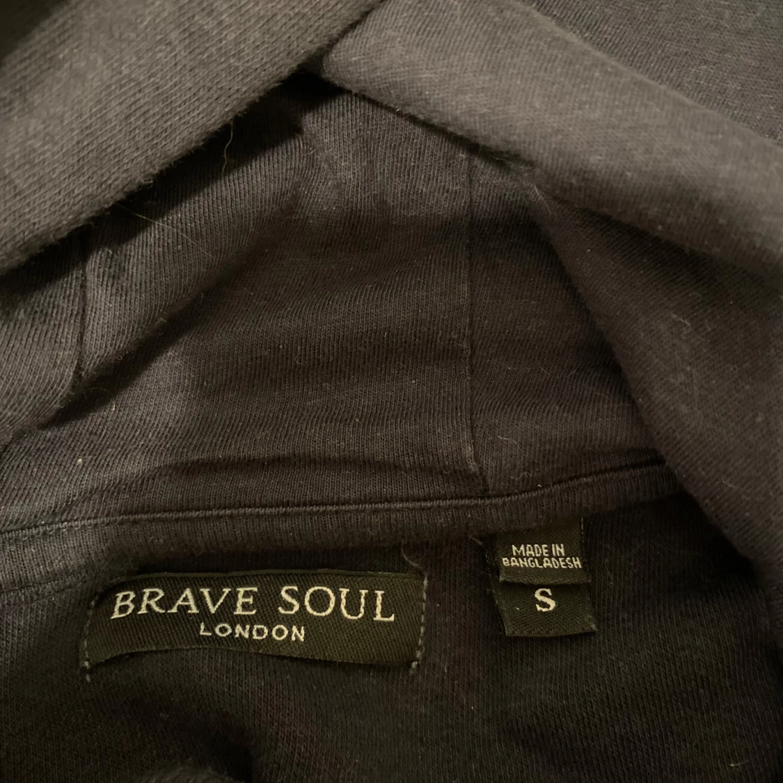 En klassisk svart hoodie från Brave Soul i storlek S med huva och snörning. Tröjan har en stor magficka och ribbade muddar vid ärmslut och nederkant. Perfekt för chill dagar eller när du vill ha en enkel och stilren look.