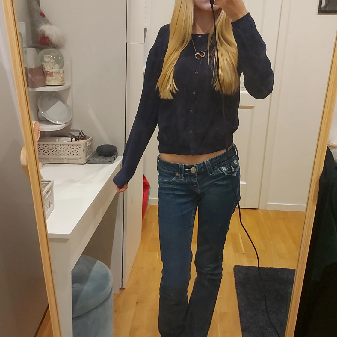 En gullig liten tunnare kofta som är mörkblå. Du kan matcha den med mycket. Storlek:XS/S