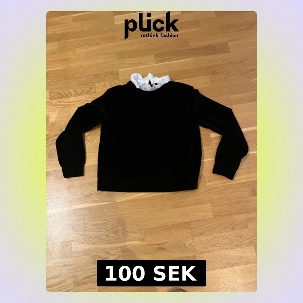 Snygg svart långärmad tröja i mjuk sammet med en vit volangkrage som ger en cool kontrast. Perfekt för dig som gillar att sticka ut med detaljer. Tröjan har en klassisk passform och känns både trendig och bekväm.