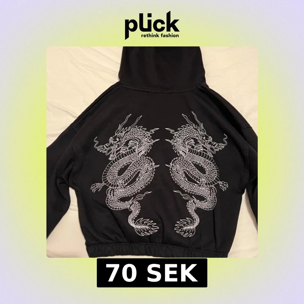 Cool svart hoodie med stort draktryck i vitt på ryggen och kinesiska tecken på framsidan. Huva med textdetaljer och elastisk nederkant för en bekväm passform. Perfekt för en unik och stilren look.