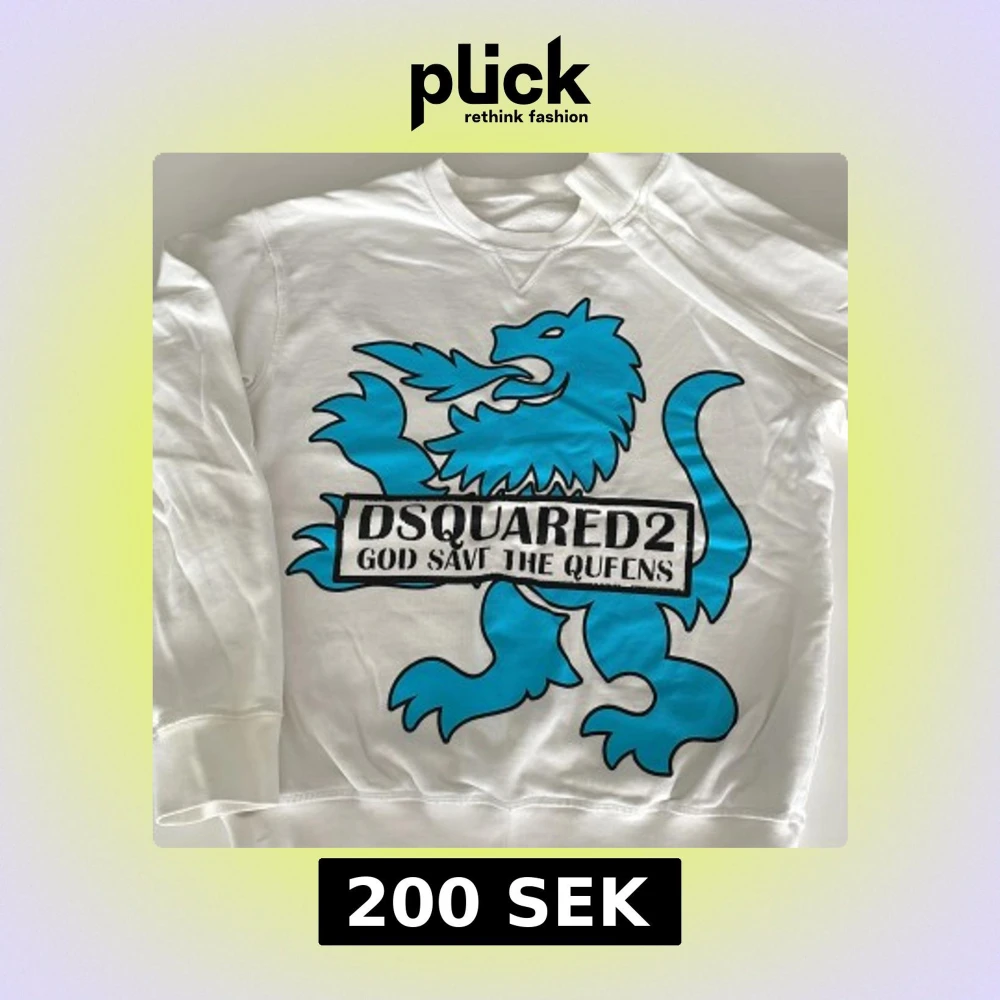 Cool vit sweatshirt från Dsquared2 med stor blå lejonprint och texten 'God Save The Queens' framtill. Tröjan har rund halsringning och ribbade muddar. Perfekt statement piece för dig som vill sticka ut med en unik design.