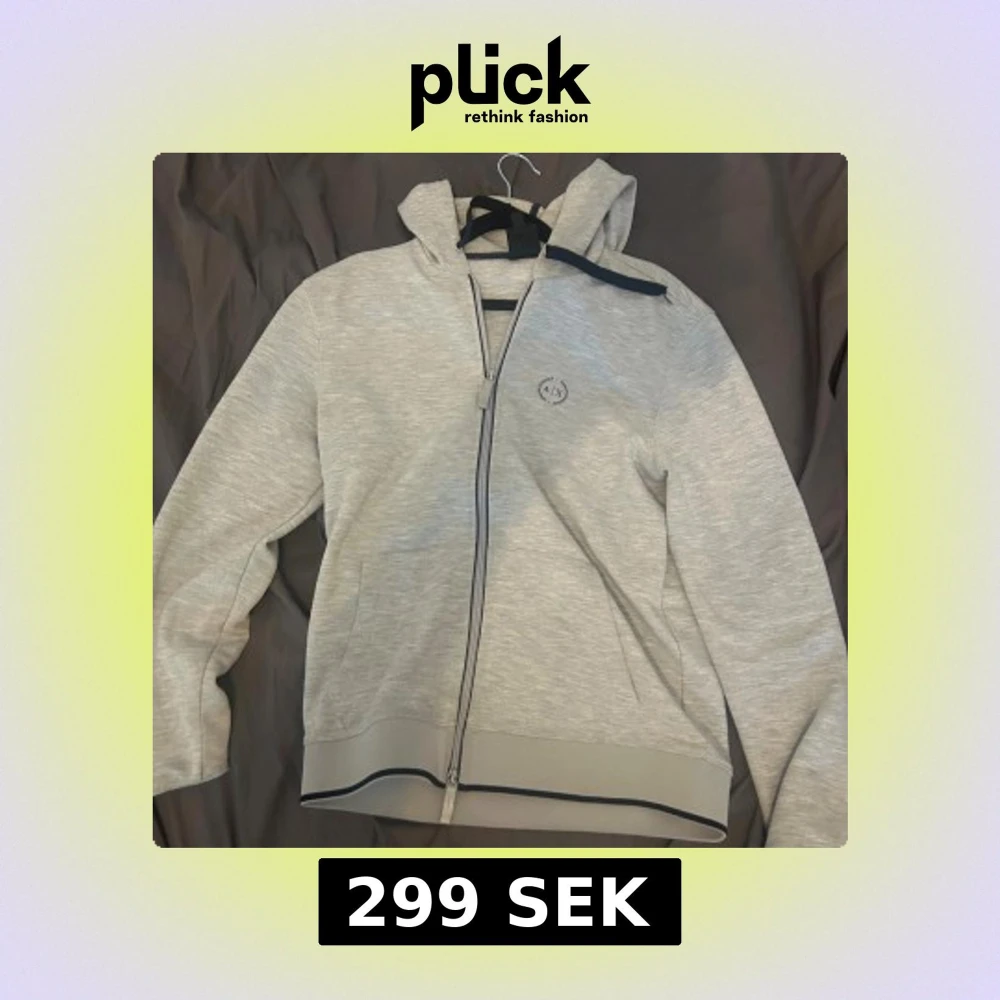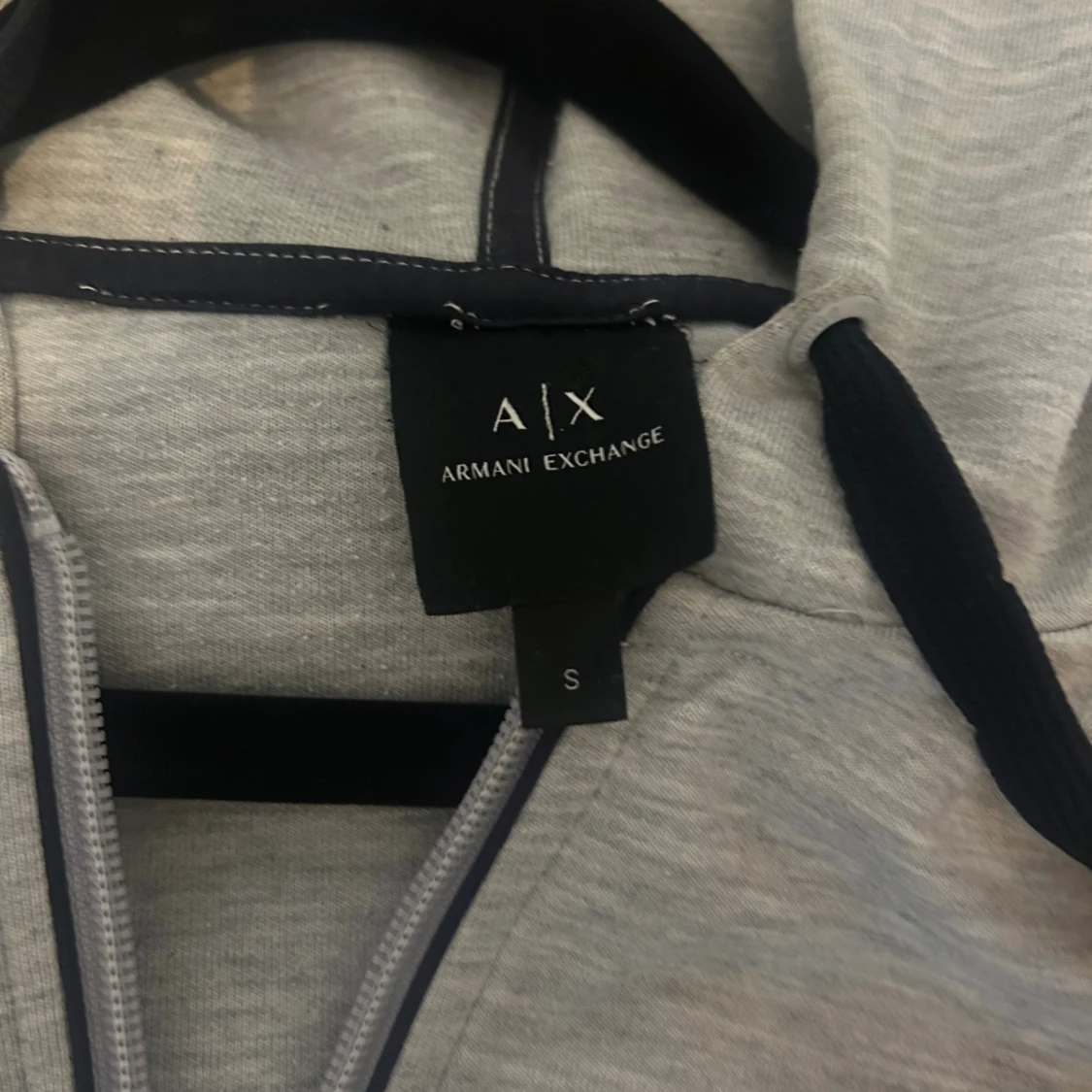 Snygg ljusgrå hoodie från Armani Exchange med dragkedja och huva. Storlek S