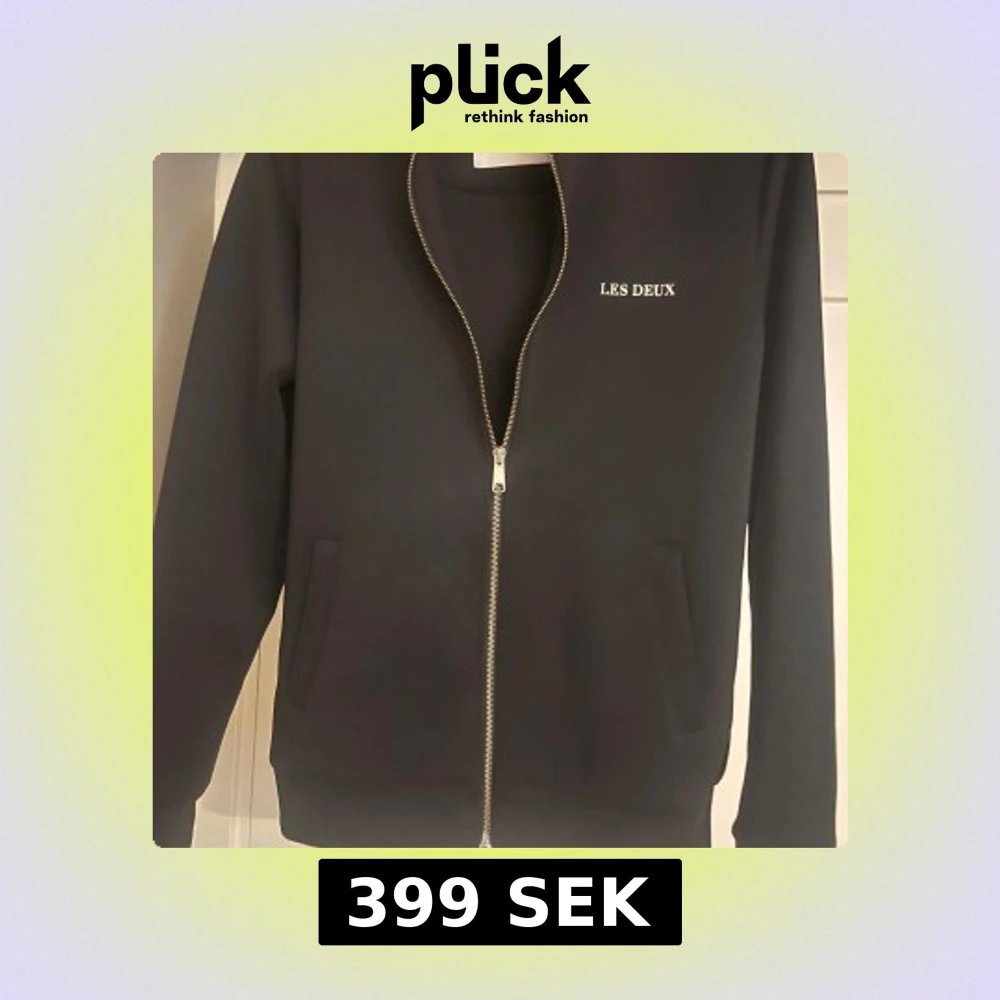 Snygg svart hoodie från Les Deux med dragkedja framtill. Tröjan har långa ärmar och en stilren design med märkets logga på bröstet. Perfekt för en avslappnad stil.