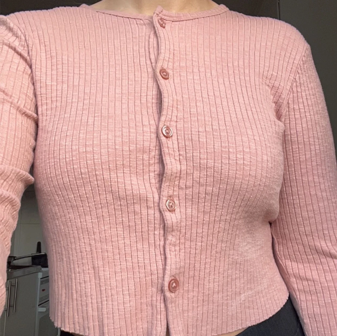 Säljer en superfin rosa ribbad kofta med knappar hela vägen fram. Den är croppad och har långa ärmar, perfekt för både vår och höst. Koftan är i mycket bra skick och passar till både vardag och fest. Skicka ett meddelande vid intresse! 💖