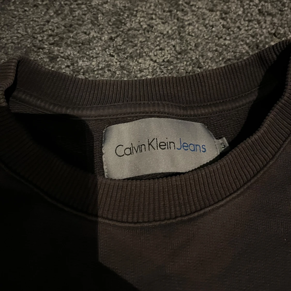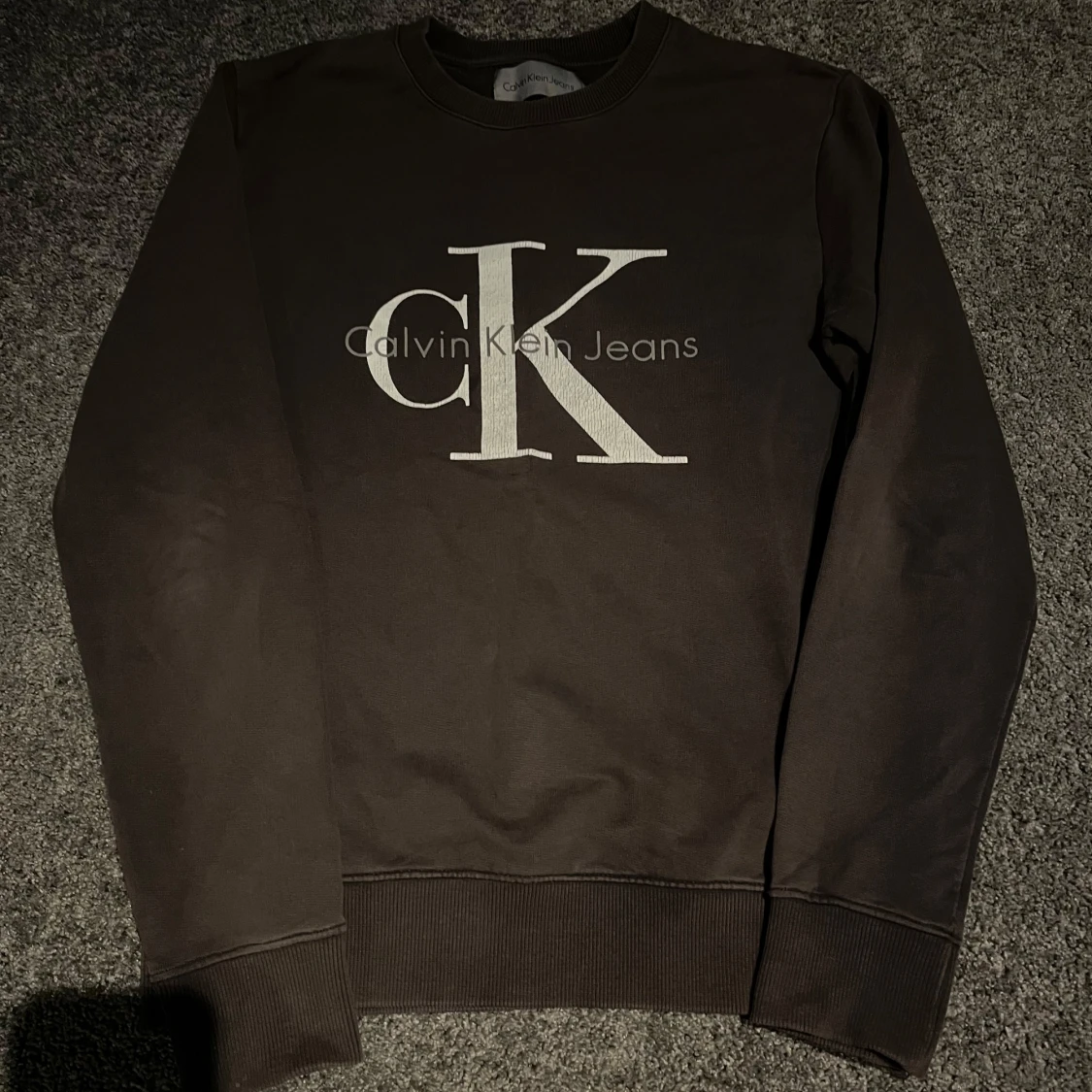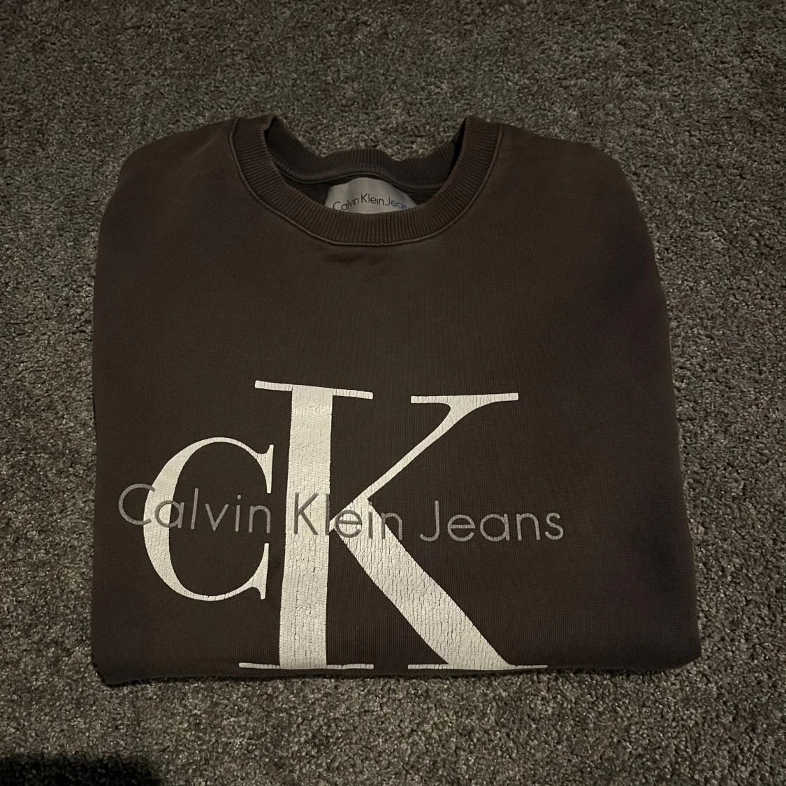Säljer en snygg brun sweatshirt från Calvin Klein Jeans med det ikoniska CK-logotypen tryckt på framsidan. Tröjan har en klassisk rund halsringning och ribbade muddar vid ärmslut och nederkant. Perfekt för en stilren och avslappnad look. Pris kan diskuteras vid snabb affär!🙌🏻