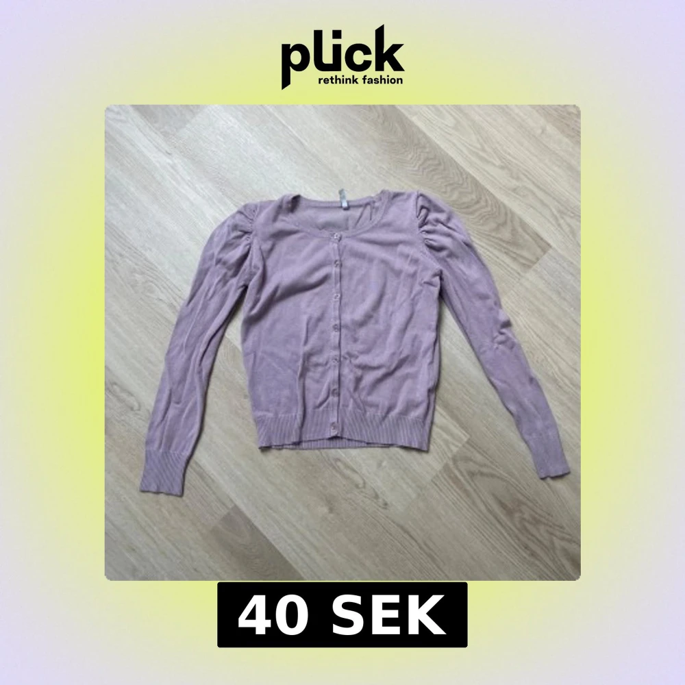 Supersöt ljuslila kofta från Flash i storlek S. Koftan har långa ärmar med lätt puff vid axlarna och knappar hela vägen framtill. Ribbstickade muddar vid ärmslut och nederkant. Perfekt att slänga över en topp för en chill look.
