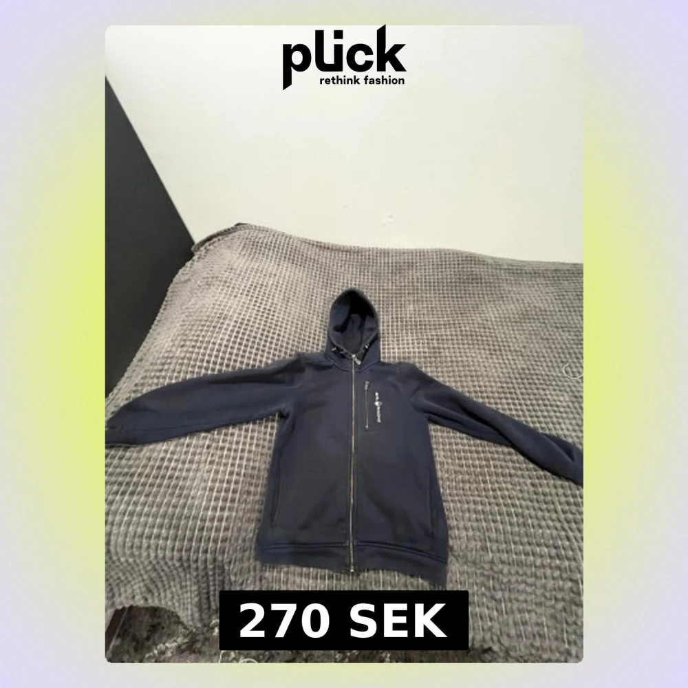 Snygg mörkblå hoodie från Sail Racing med dragkedja hela vägen och huva med snörning. Tröjan har en bröstficka med dragkedja och logga på vänster sida. Tillverkad i mjuk polyester, perfekt för chill eller när du vill vara bekväm. Lappaena inuti är borta för dom va lite jobbiga men annars är den i perfekt skick