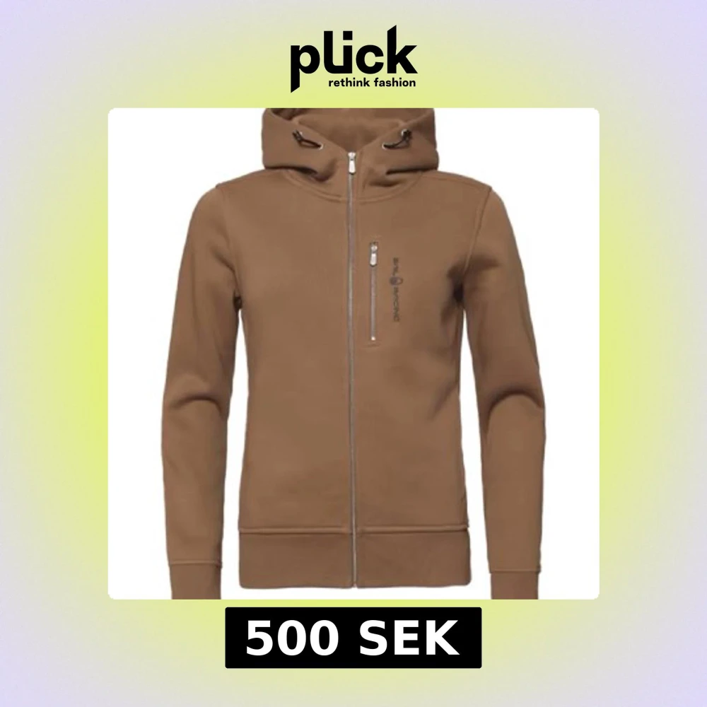Snygg brun hoodie från Sail Racing med dragkedja och justerbar huva. Perfekt för kyliga dagar med sin bekväma passform och stilrena design. Den har långa ärmar och en diskret logga på bröstet.