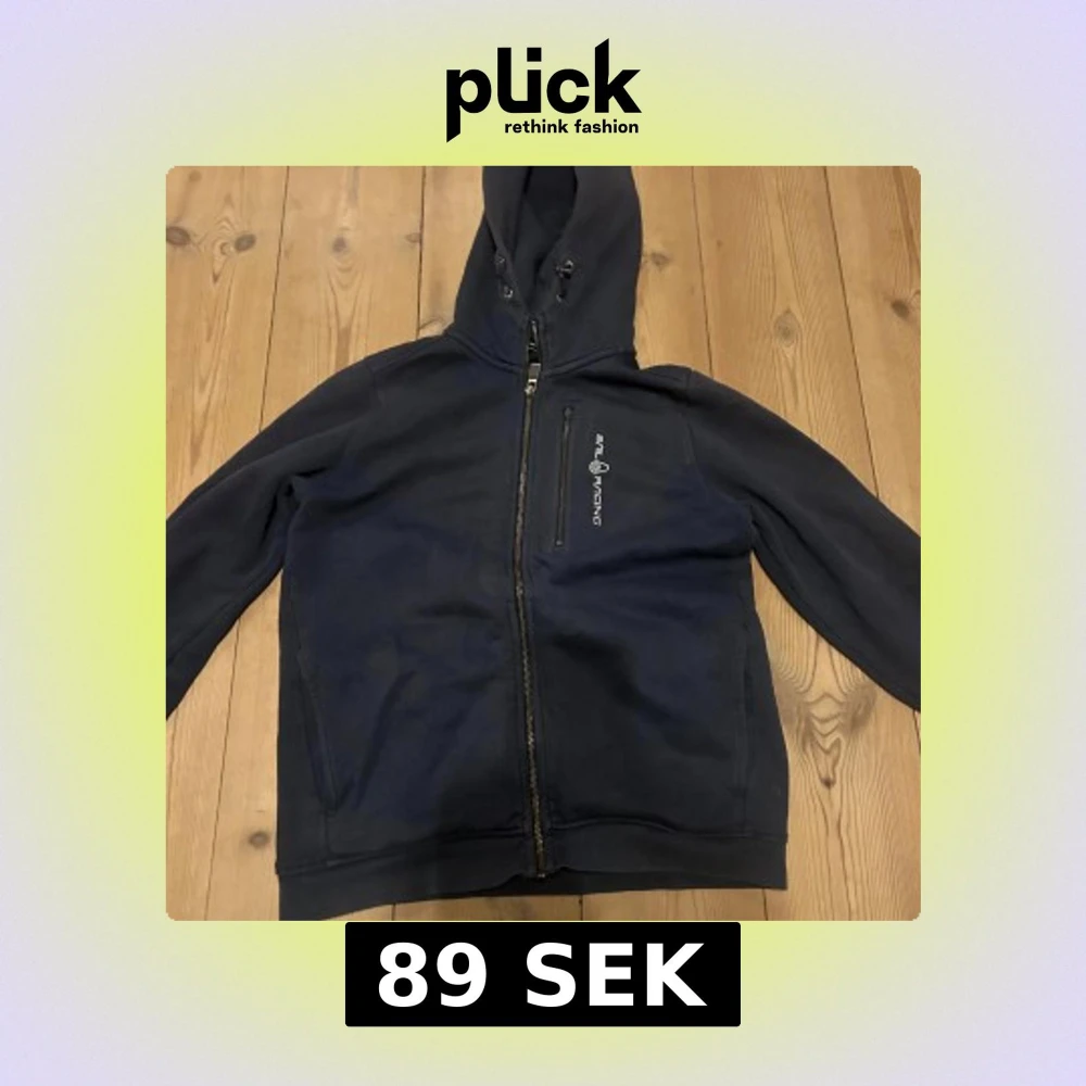 Säljer en mörkblå hoodie från Sail Racing med dragkedja och justerbar huva. Perfekt för kyliga dagar med sin bekväma passform och stilrena design. Den har en logotyp på bröstet och praktiska fickor framtill.