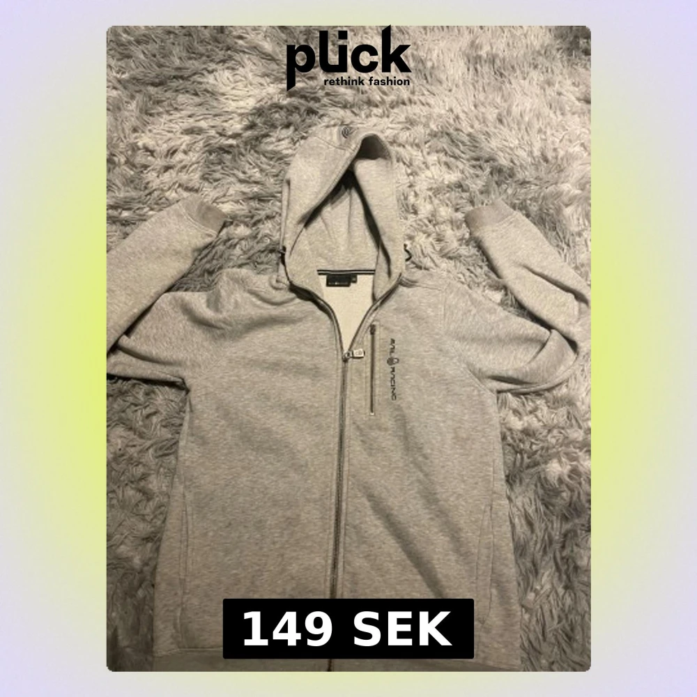 Snygg ljusgrå hoodie från Sail Racing med hel dragkedja och huva. Den har används många gånger och har fläckor på tröjan och ett små hål. Dragkedjan på bröstet är sönder men går att stänga och öppna. Tröjan har en extra zipficka på bröstet och broderad logga i svart. Tillverkad i mjuk bomullsmix, perfekt för chill eller häng. Ribbad mudd vid ärmslut och nederkant för skön passform.
