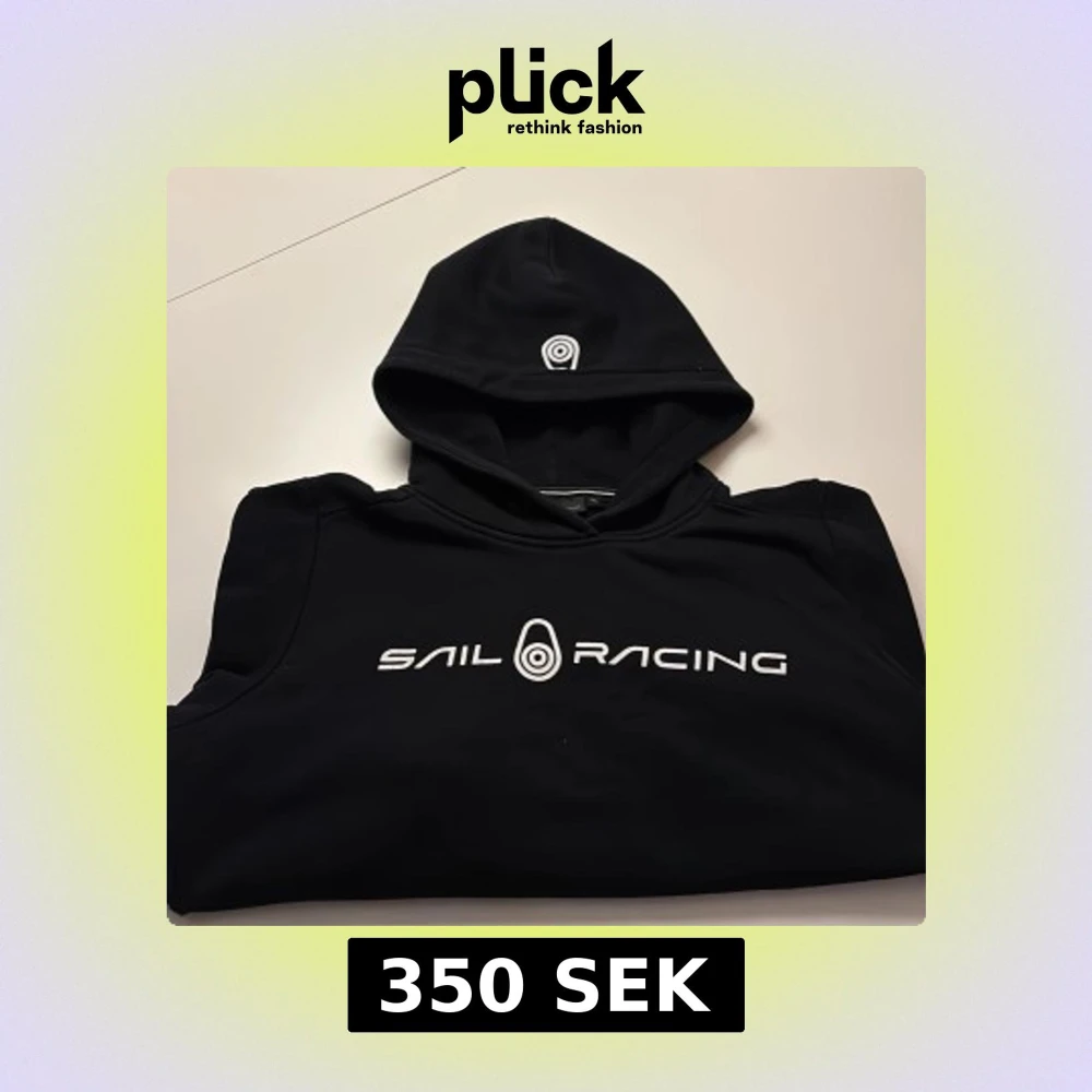 Svart hoodie från Sail Racing med vit logotyp och text på bröstet. Tröjan har huva med tryckt emblem, långa ärmar och ribbade muddar. Materialet är mjukt och känns som bomull eller polyester, perfekt för chill dagar. Snygg och enkel design som funkar till jeans eller joggers.
