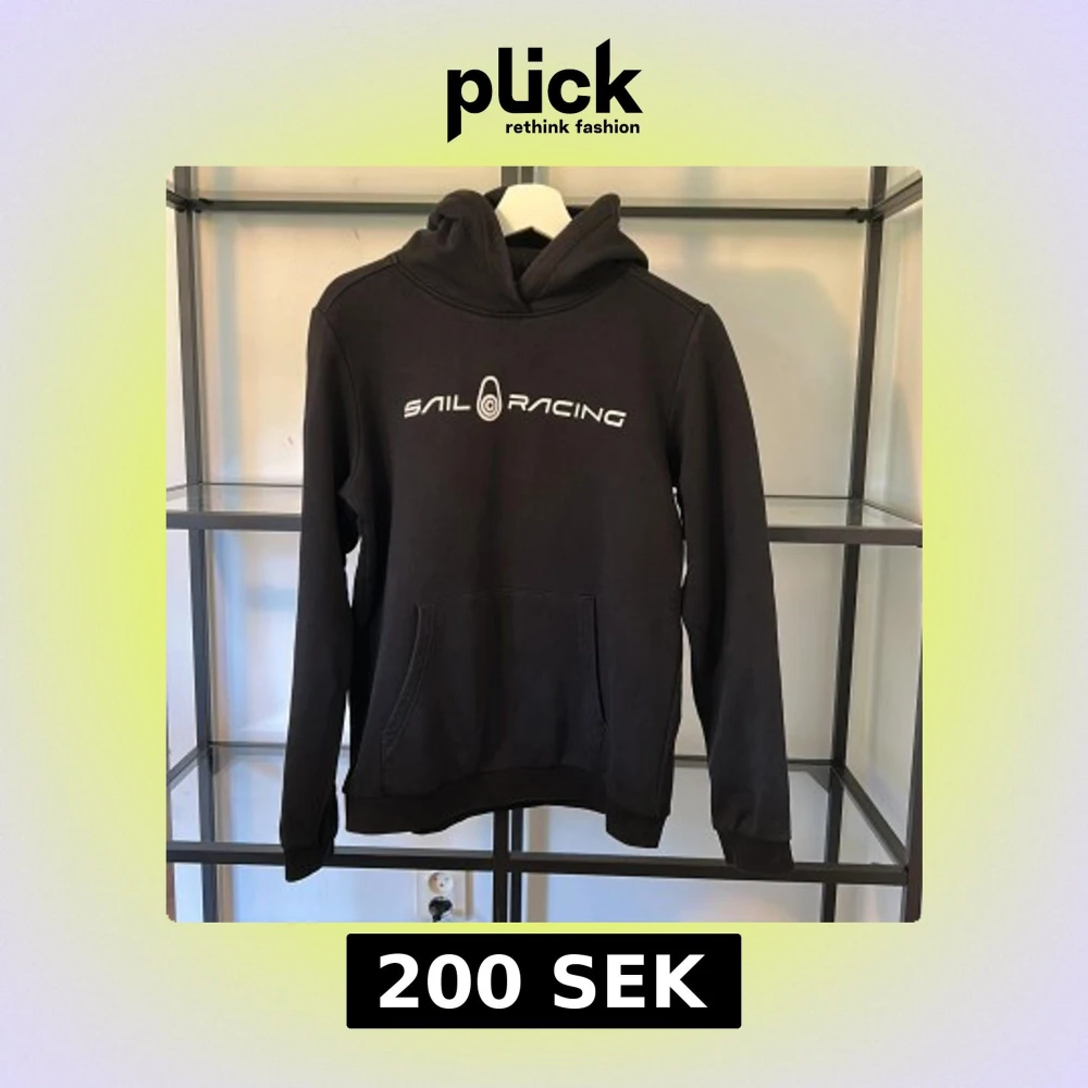 Svart hoodie från Sail Racing med vit logga framtill och liten logga på huvan. Klassisk känguruficka och ribbade muddar. Perfekt för dig som gillar en stilren och sportig look. Nypris 600 kr.