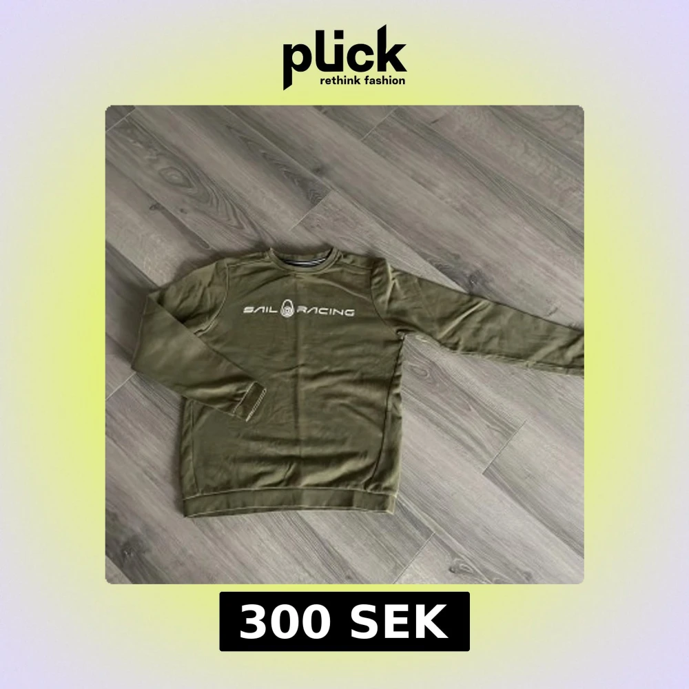 Säljer en olivgrön tröja från Sail Racing med långärmad design. Lite sprucket tryck