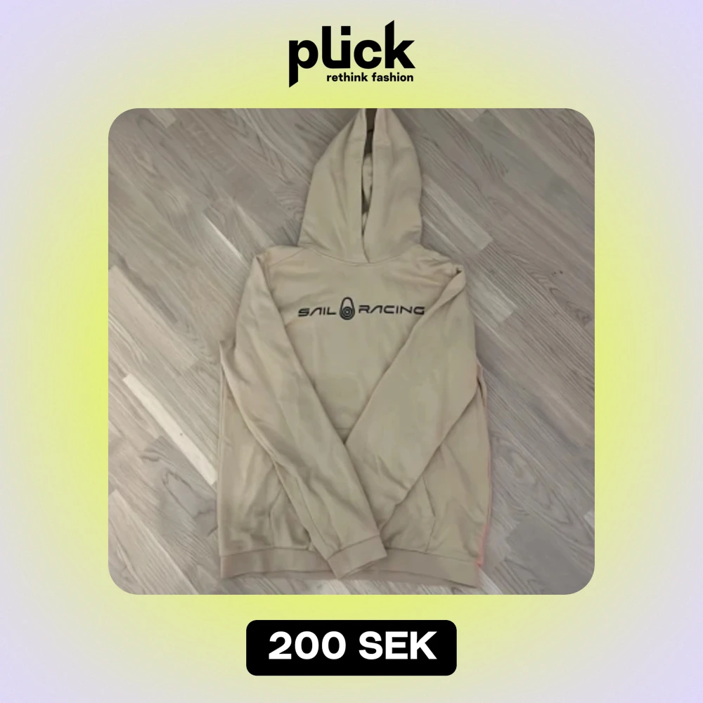Säljer en snygg beige hoodie från Sail Racing. Den är i bra skick och har en klassisk passform med långa ärmar och en stor luva. Perfekt för en avslappnad stil eller för att hålla sig varm under kyliga dagar. Den har en enkel design med Sail Racing-loggan tryckt på framsidan.