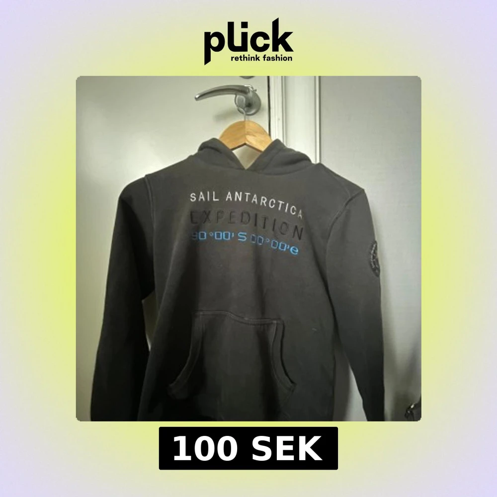 Svart hoodie från Sail Racing med tryck 'Sail Antarctica Expedition' och blå detaljer på ryggen. Klassisk ficka framtill, huva med broderad logga och lång ärm. Perfekt för dig som gillar äventyr och sportig stil.