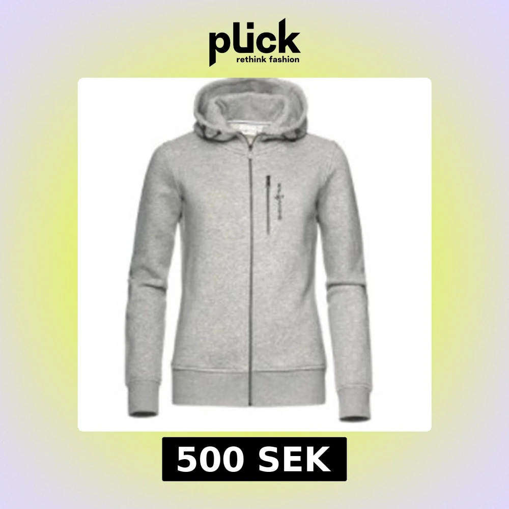 Snygg och bekväm grå hoodie med dragkedja framtill. Den har en praktisk bröstficka med dragkedja och en mysig huva. Perfekt för kyliga dagar. Storlek L från dam kollektionen.