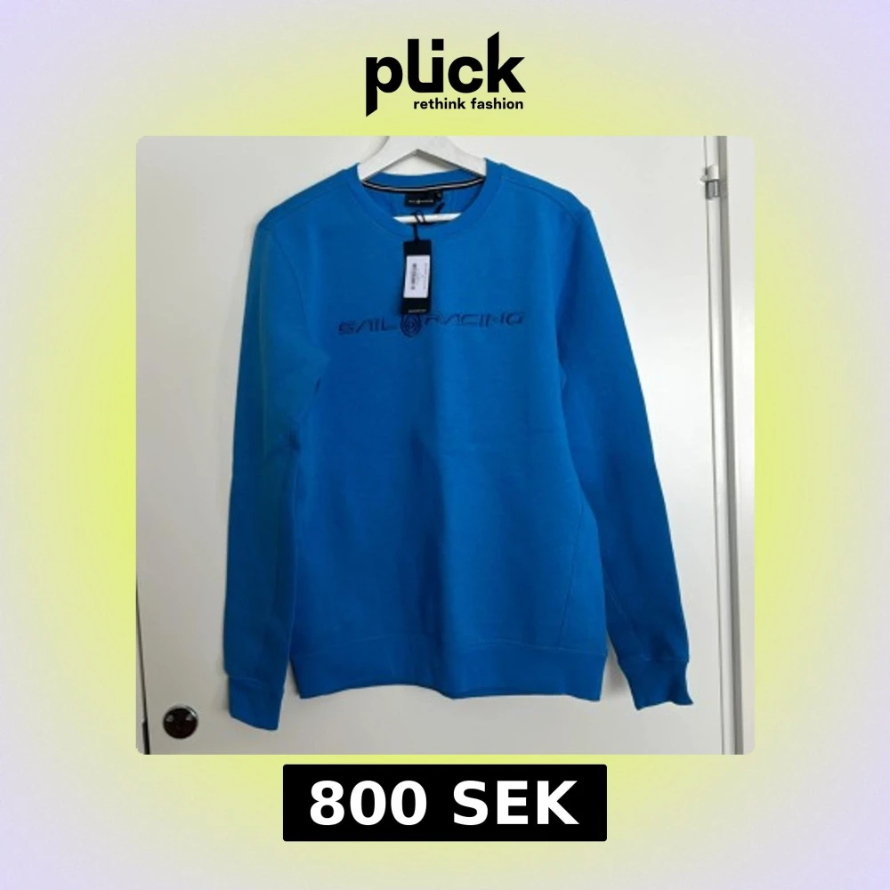Säljer en snygg blå tröja från Sail Racing med text på bröstet. Tröjan har långa ärmar och en rund halsringning. Perfekt för en avslappnad stil. Storlek M. Helt ny. Inga defekter.