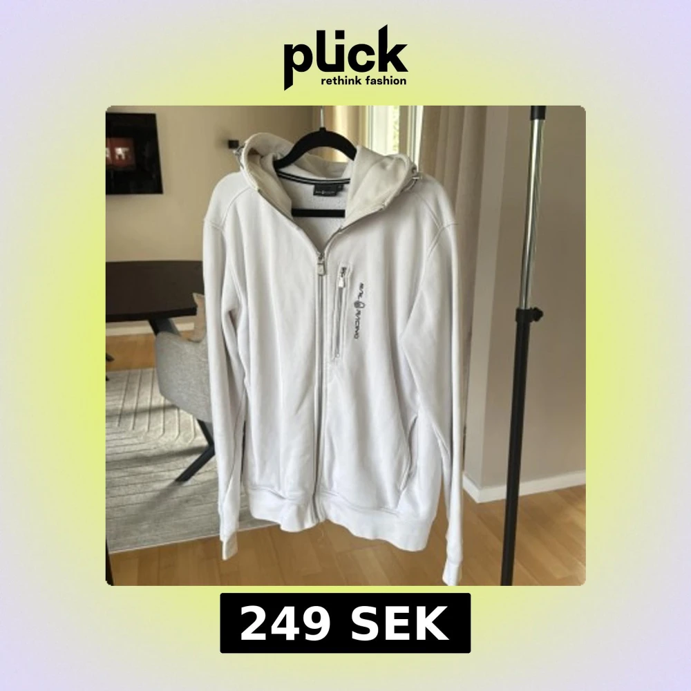 Vit hoodie från Sail Racing med dragkedja framtill, bröstficka med logga och justerbar huva. Tröjan har långa ärmar och två sidofickor. Perfekt för dig som gillar stilren och sportig look.