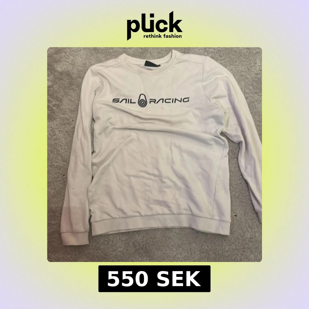 Vit långärmad sweatshirt från Sail Racing med svart logga tryckt på bröstet. Klassisk rund halsringning och ribbade muddar vid ärmslut och nederkant. Perfekt för en clean och sportig stil.
