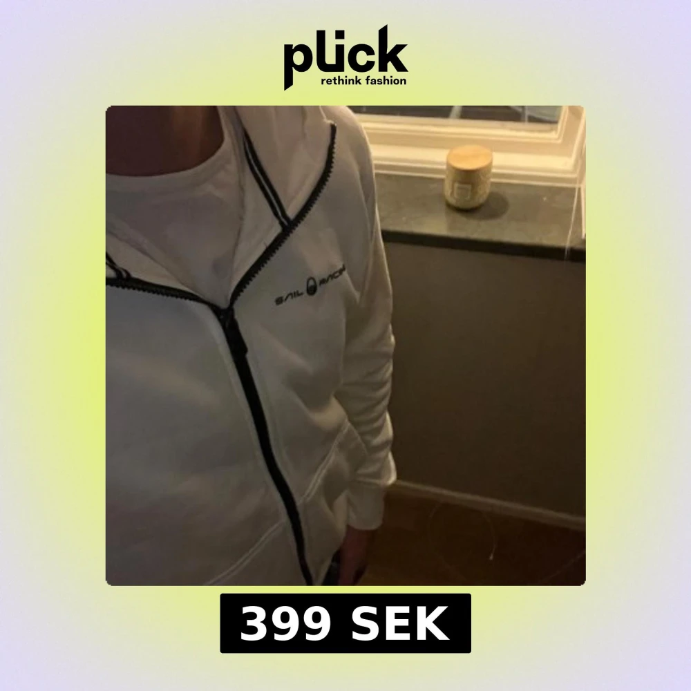 Vit hoodie från Sail Racing med svart dragkedja och logga på bröstet. Tröjan har huva med snörning, känguruficka och ribbade muddar. Perfekt för dig som gillar en clean och sportig stil. Materialet är mjuk bomullsmix som känns skön mot huden.