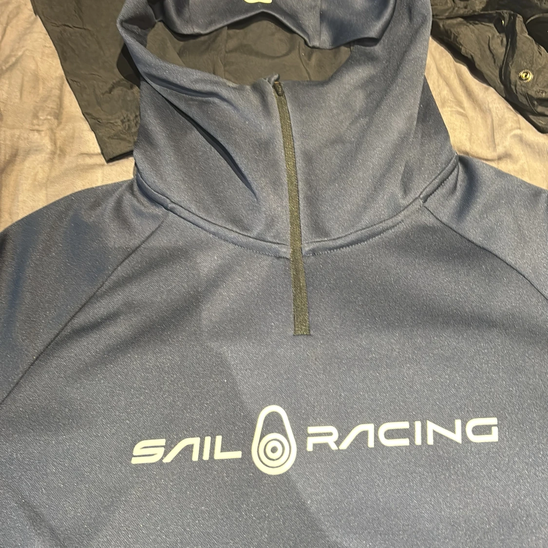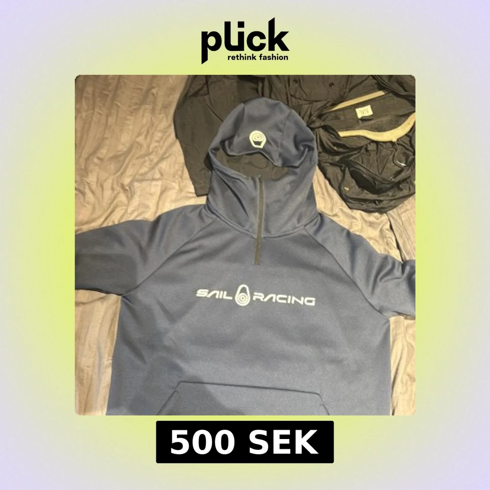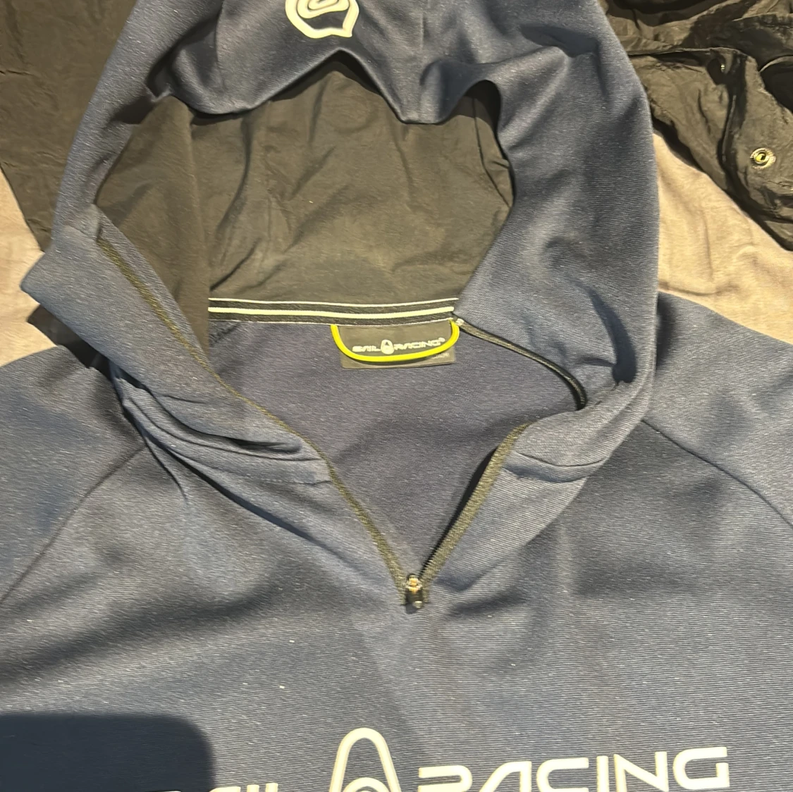Säljer en snygg blå hoodie från Sail Racing med dragkedja vid halsen och logotyp på bröstet. Perfekt för en sportig look eller en avslappnad dag. Hoodien har en praktisk ficka framtill.